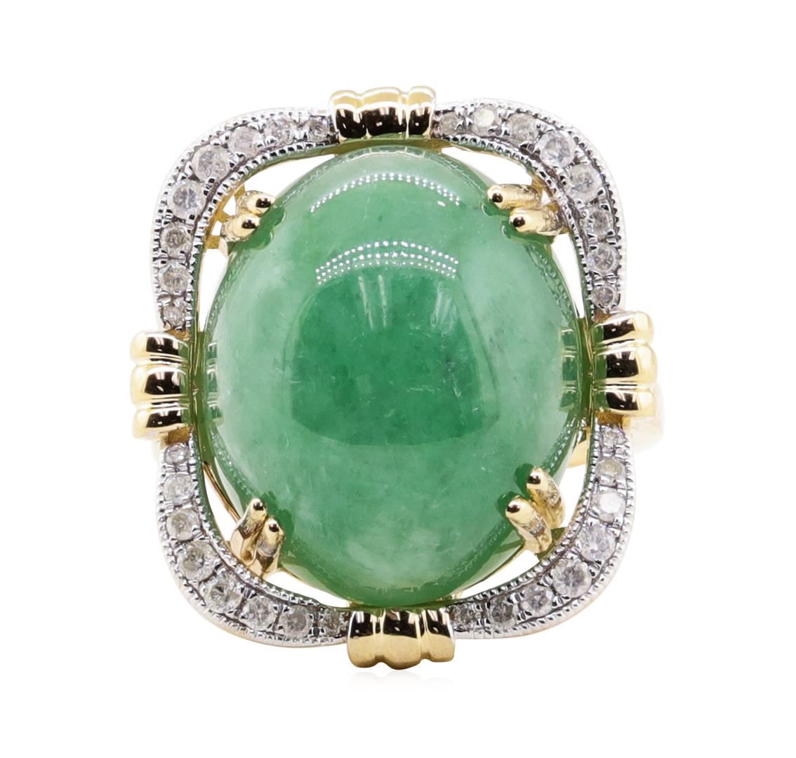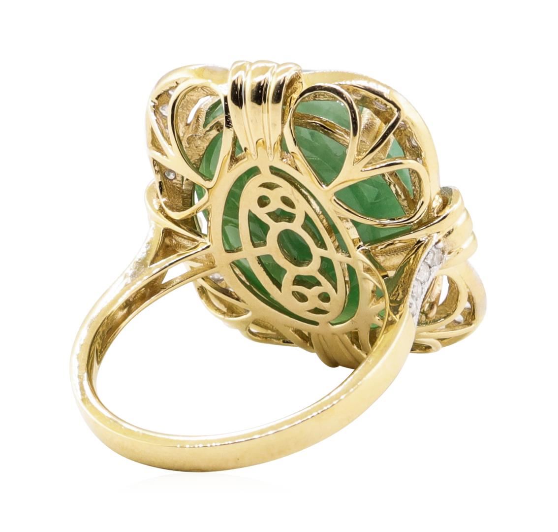 One 22.19ct Jadeite and Diamond Ring - 14KT Yellow Gold. AIG certified. See Appraisal for more details. AIG Appraised.
