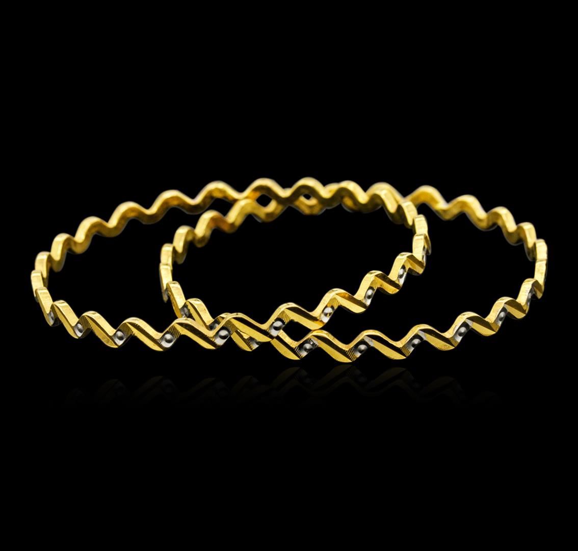 Beautiful pair of 22KT Yellow Gold Fancy Zig Zag Bangle Bracelets measuring 2-1/2" wide and weighs 30.00 grams.