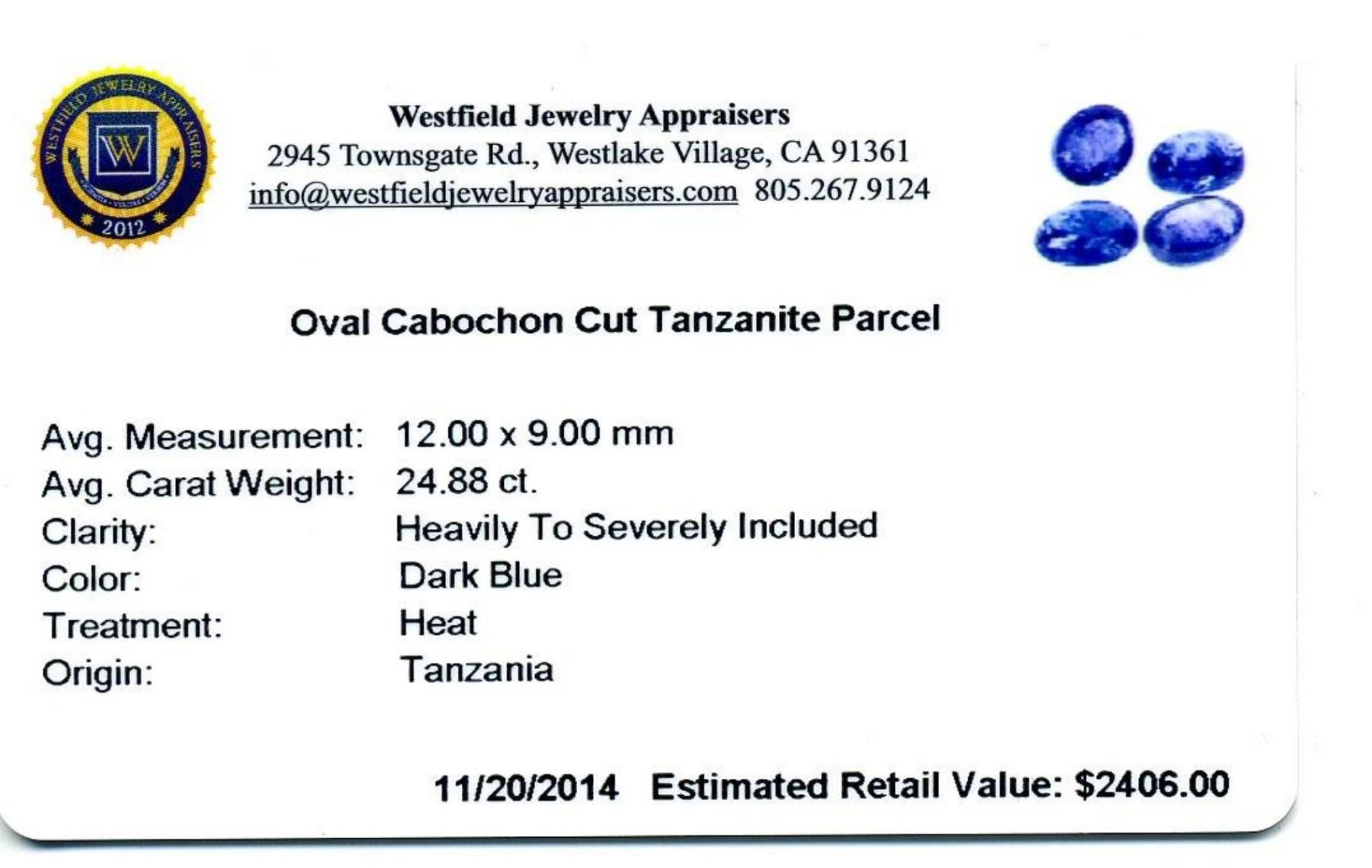 24.88ctw. Oval Cabochon Cut Tanzanite Parcel. Westfield Appraised.