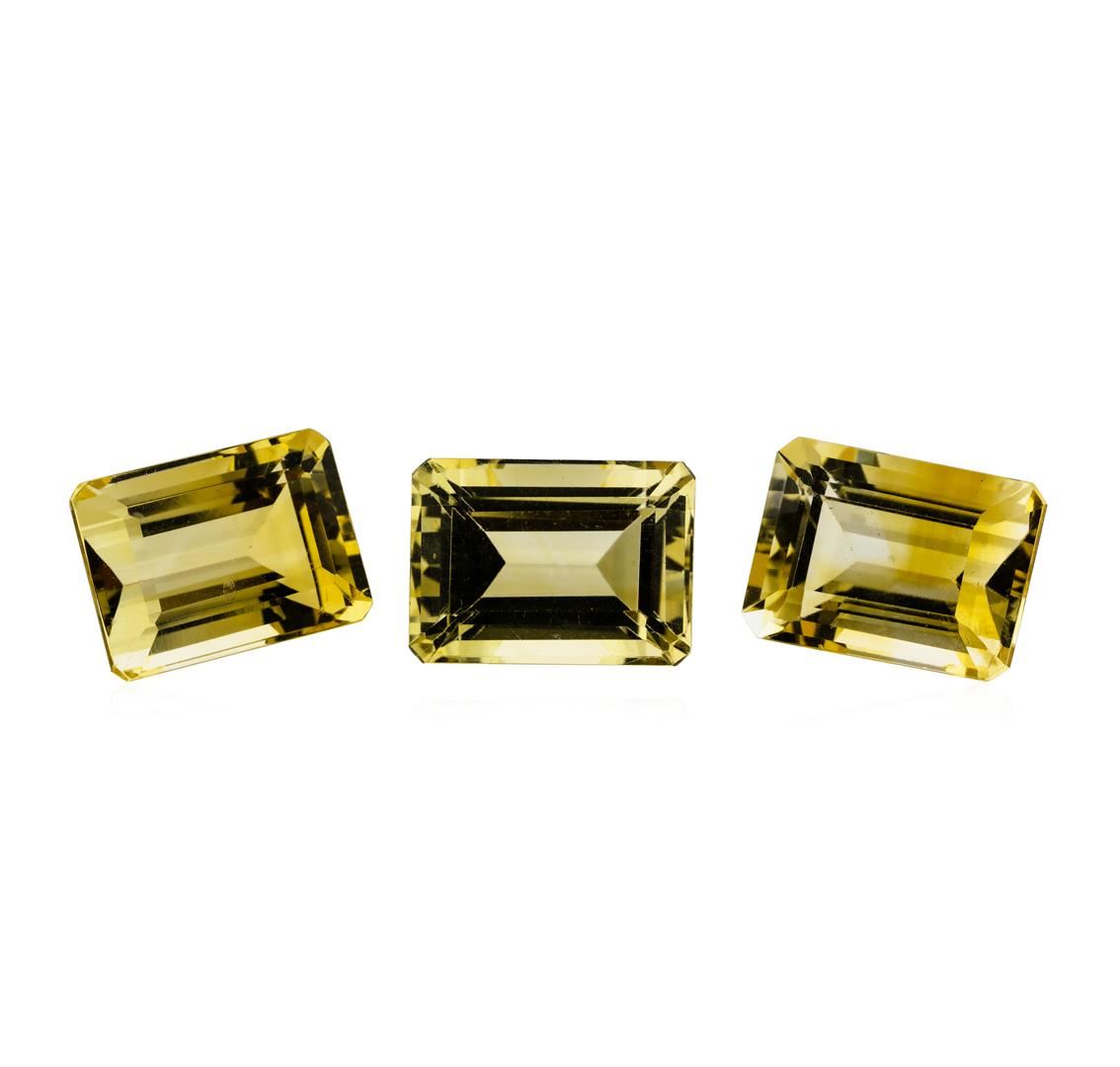 One natural emerald cut citrine quartz parcel of three with an exact weight of 25.16ctw., clarity is eye clean, slightly yellowish orange, medium light. Gemological Appraisals Services estimates the retail value at $754.8 GAS Appraised.