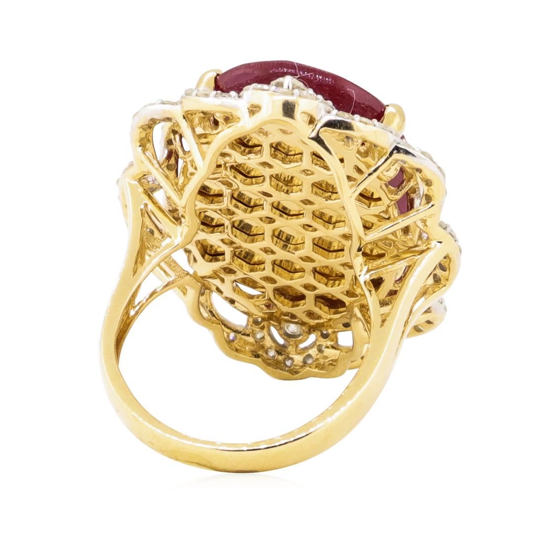 One 28.57ct Ruby and Diamond Ring - 14KT Yellow Gold. AIG certified. See Appraisal for more details. AIG Appraised.