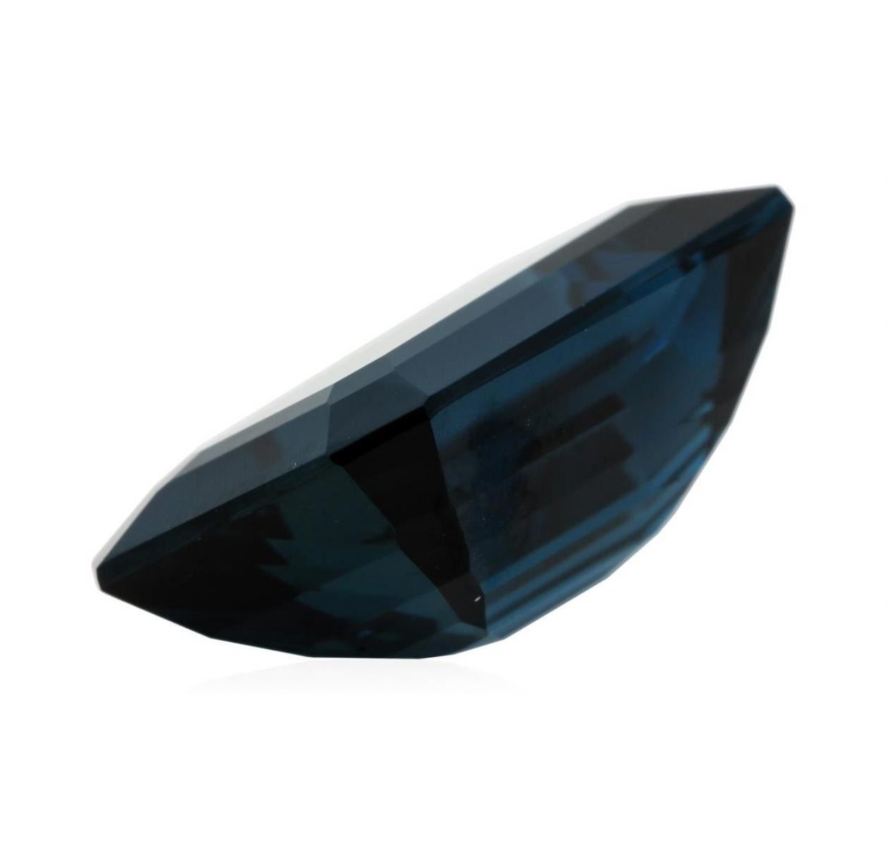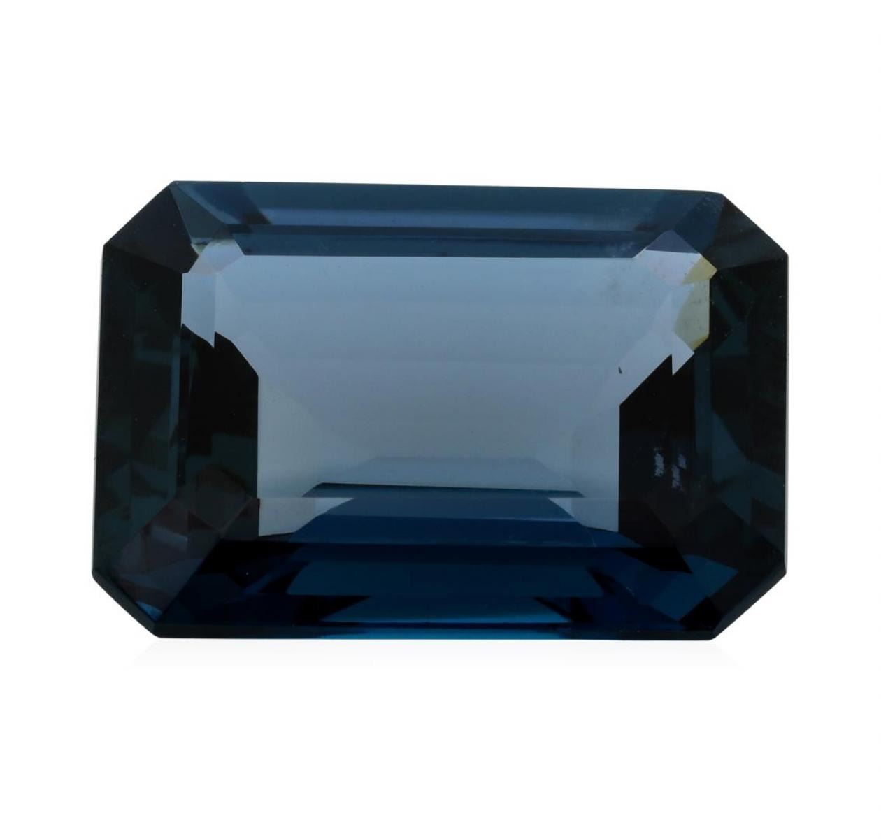 One natural emerald cut london blue topaz with an exact weight of 29.56ct., clarity is eye clean, greenish blue, medium dark. Gemological Appraisals Services estimates the retail value at $591.2 GAS Appraised.