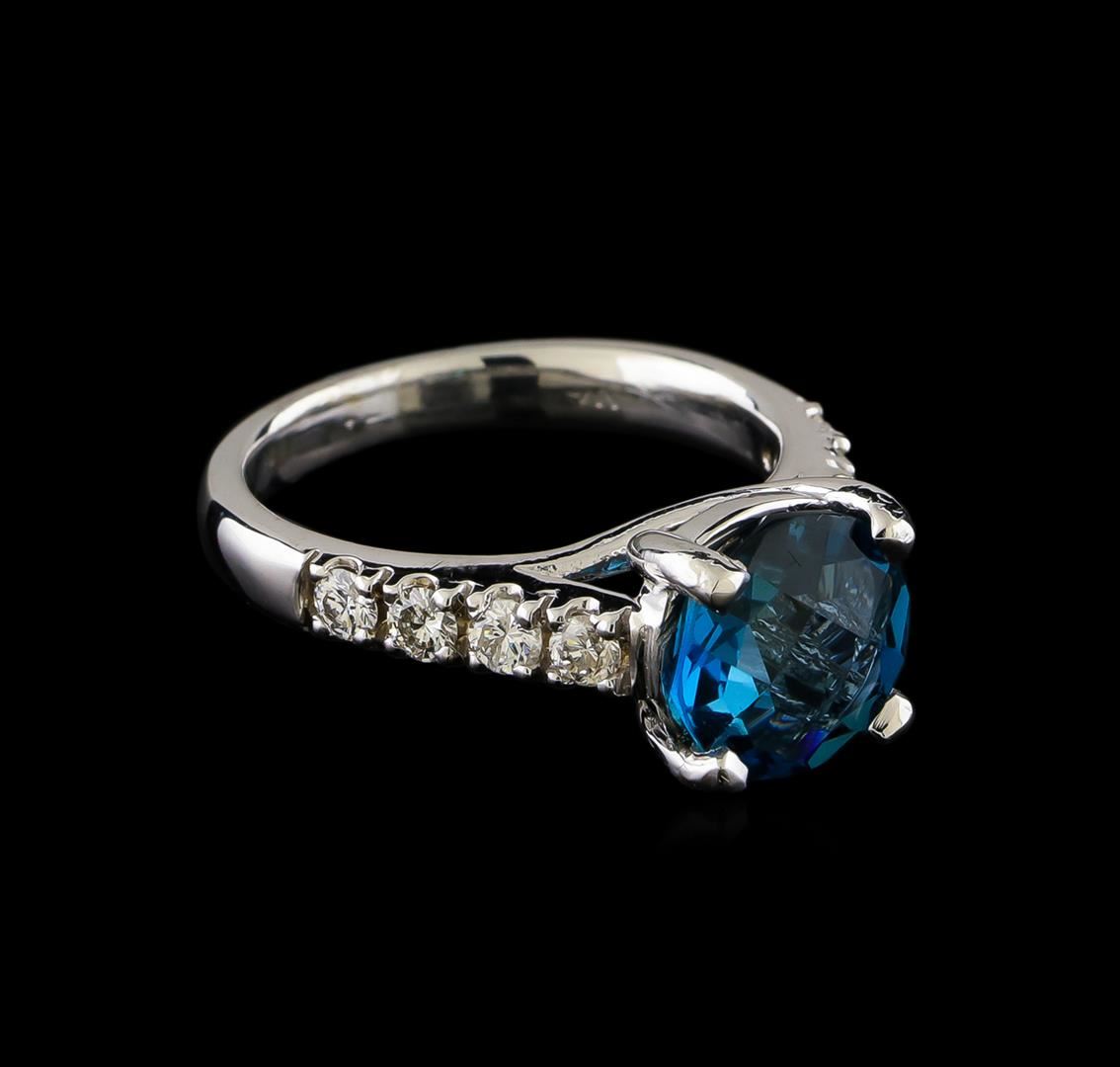 One ring featuring: 14KT white gold weighing 5.21 grams containing one blue topaz center stone with a total weight of 3.00ct and diamonds with a total weight of 0.45ct.