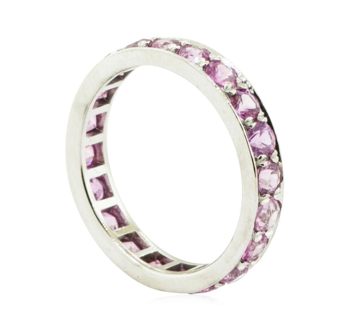 One eternity ring featuring: 14KT white gold weighing 3.1 grams containing pink sapphires weighing 3.00ctw.
