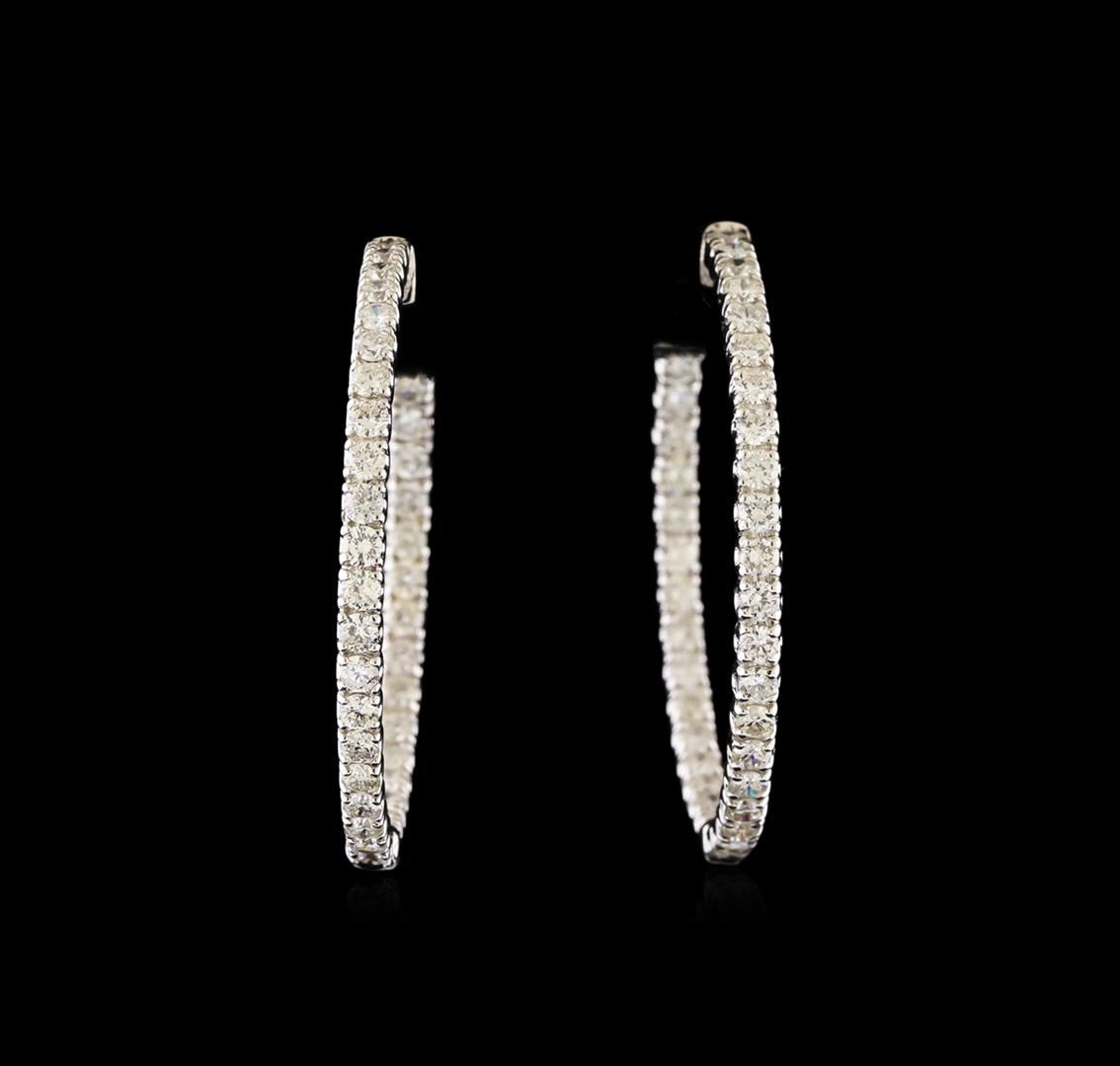 One pair electronically tested 14KT white gold lady's combination cast & assembled hoop style earrings with hinged clip backs with a bright polish finish. Identified with markings of '14K'. Condition is new, good workmanship. Containing: Seventy-Two prong set round brilliant cut diamonds, measuring 2.30 - 2.20 x 1.35mm (depth est.) approximate total weight of 72 Stones = 3.01ct. Graded in the setting. Clarity SI-1 to I-1. Color: G - I Cut Good. Total Weight of Diamonds 3.01ct.. Total Weight of Earrings 9.50gm. GAS Appraised at $8,155.00.