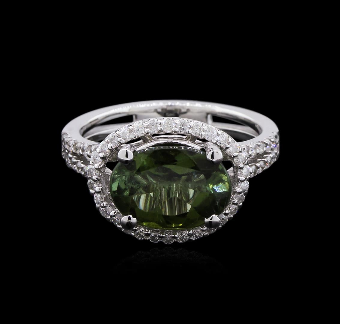 One ring featuring: 14KT white gold weighing 5.08 grams containing one green tourmaline with a total weight of 3.03ct and diamonds with a total weight of 0.58ct.