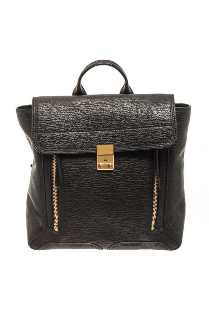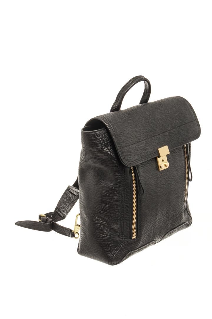 3.1 Phillip Lim Pashli Backpack Leather. All available information is listed in the description and shown in the photos. 3.1 Phillip Lim Pashli Backpack Leather exterior color black, interior color black, exterior material leather, interior material fabric, hardware color gold, top handle, two back straps, gold tone hardware. 11"W x 14"H x 4"D 2" handle drop / 27.94 x 35.56 x 10.16 CM