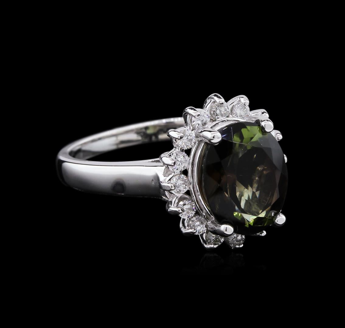 One ring featuring: 14KT white gold weighing 4.57 grams containing one green tourmaline with a total weight of 3.10ct and diamonds with a total weight of 0.35ct.