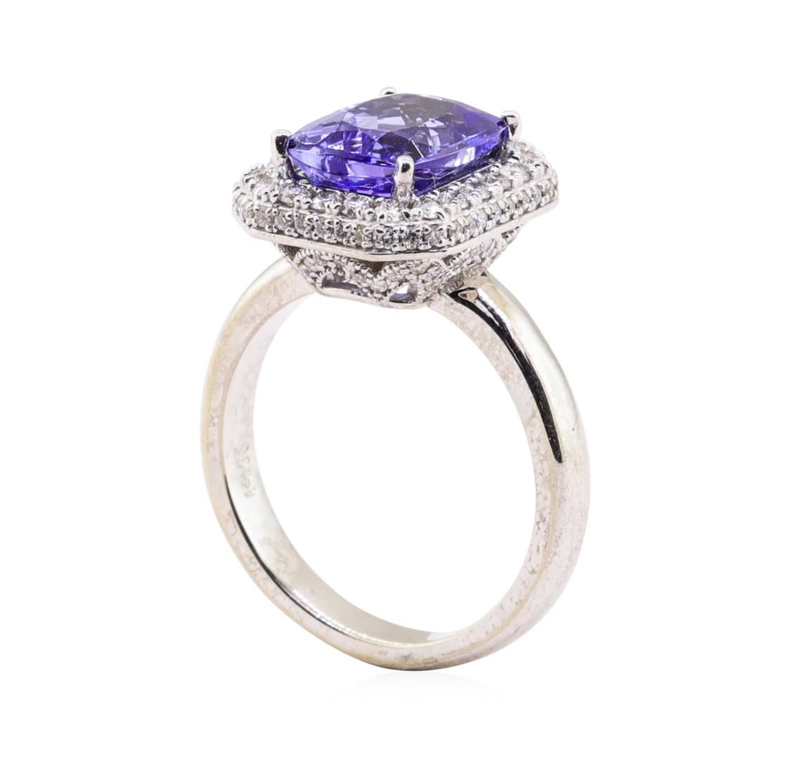 One 3.10ct Tanzanite and Diamond Ring - 14KT White Gold. IAS certified. See Appraisal for more details.
