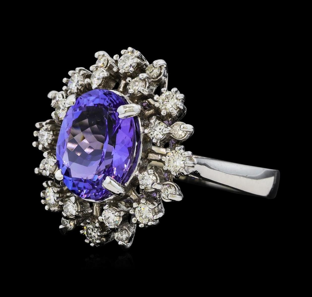 One Tanzanite and Diamond Ring including: 14KT White Gold weighing a total of 5.32 grams, Tanzanite weighing a total of 3.23ct, and 24 Diamonds weighing a total of 0.53ctw.