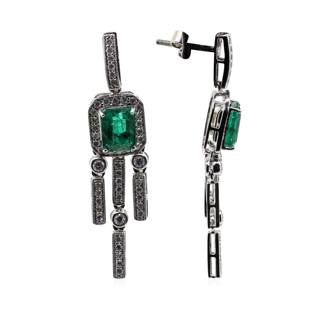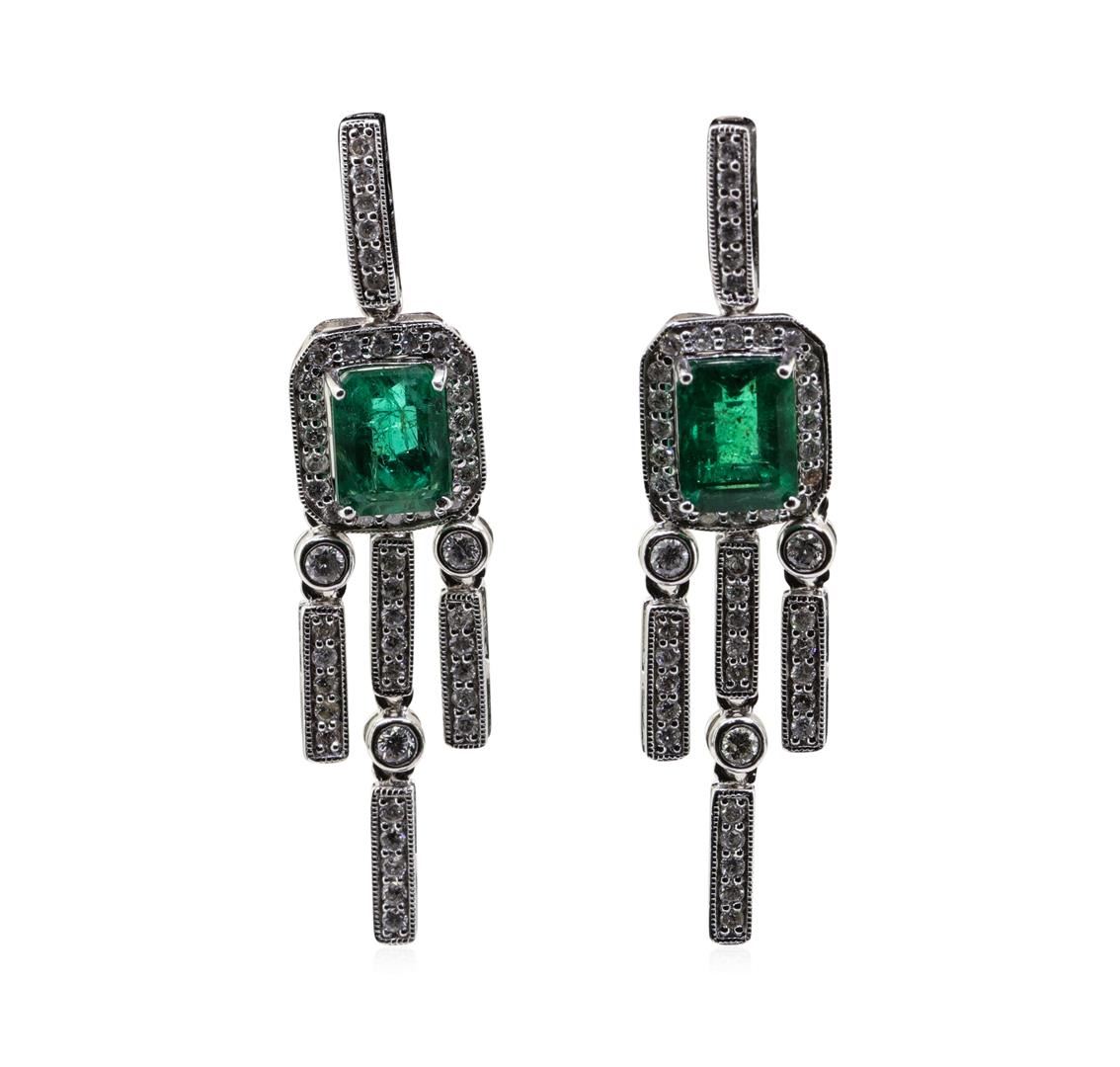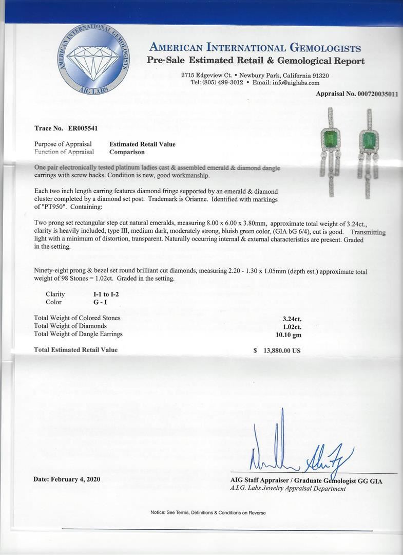 One 3.24ctw Emerald and Diamond Earrings - Platinum. AIG certified. See Appraisal for more details. AIG Appraised.