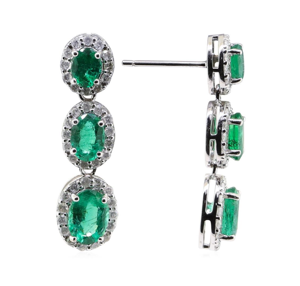 One 3.25ctw Emerald and Diamond Earrings - 18KT White Gold. AIG certified. See Appraisal for more details. AIG Appraised.