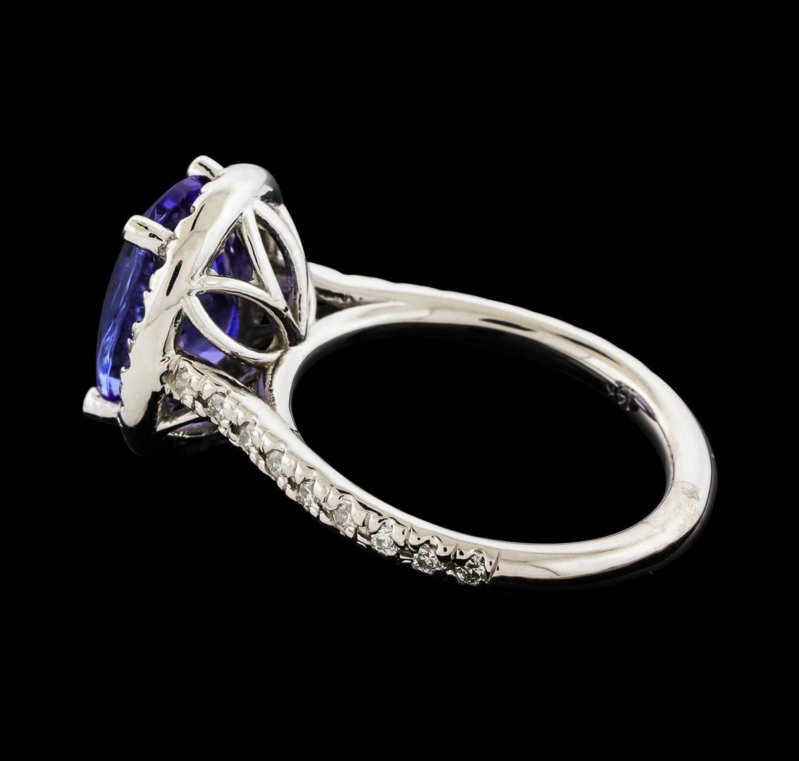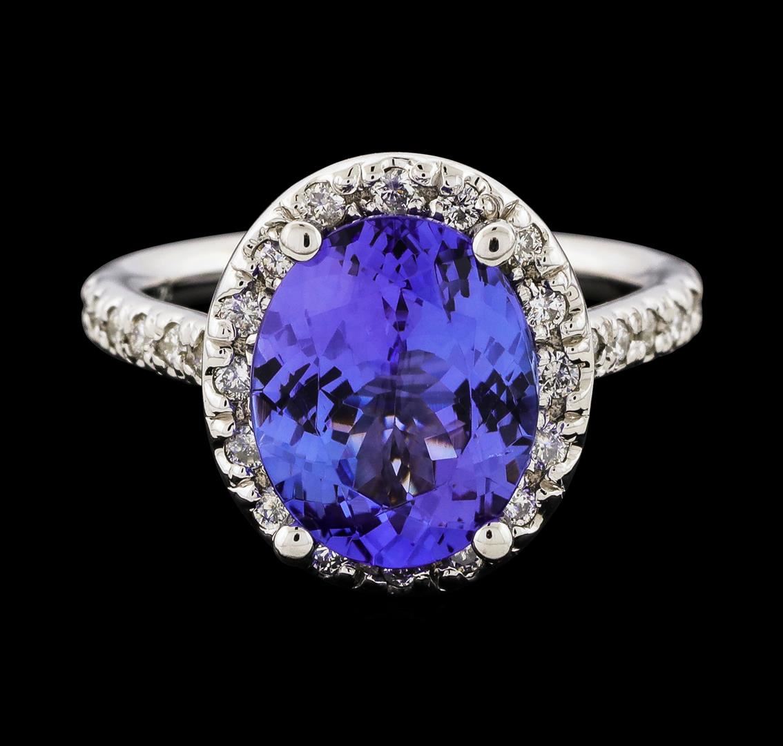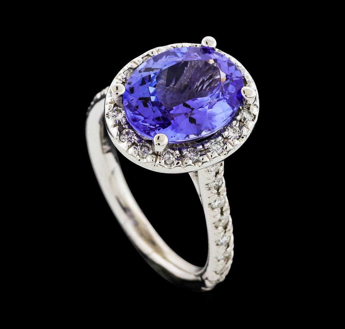 One Tanzanite and Diamond Ring featuring: 14KT White Gold with a total weight of 5.01 grams, One Tanzanite stone with a total weight of 3.63ct, and 34 Diamonds with a total weight of 0.45ctw.