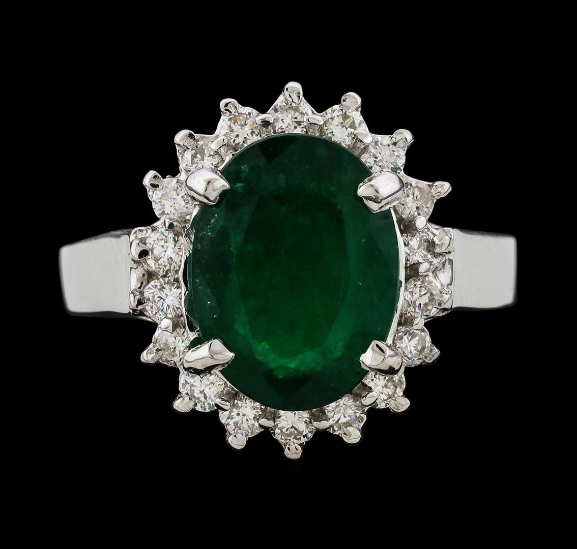 3.27 ctw Emerald and Diamond Ring - 14KT White Gold
