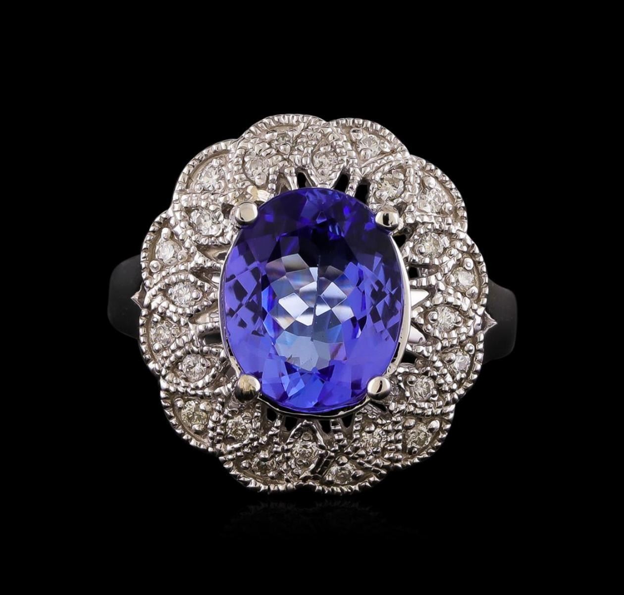 One ring featuring: 14KT white gold weighing 7.10 grams containing one tanzanite with a total weight of 3.28ct and diamonds with a total weight of 0.25ctw.