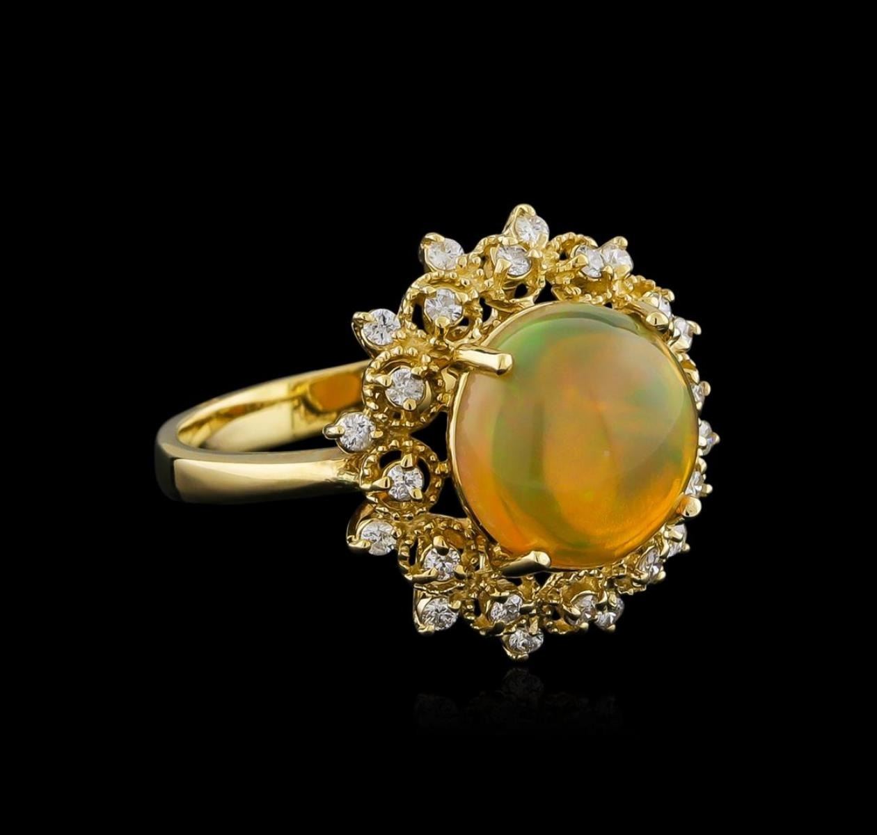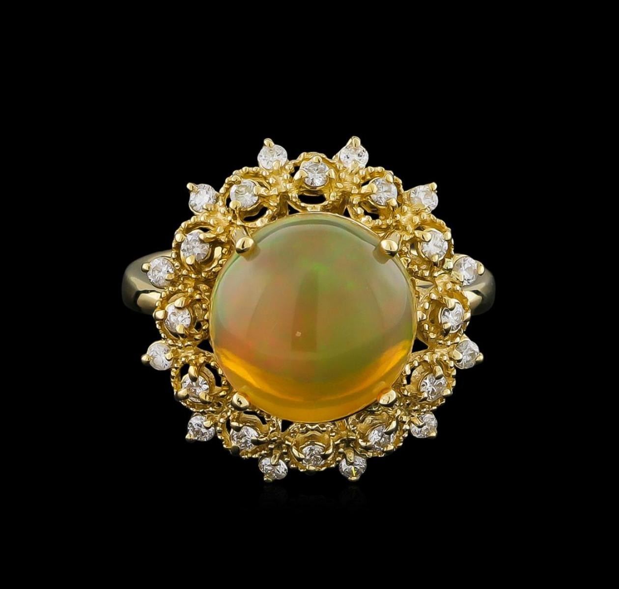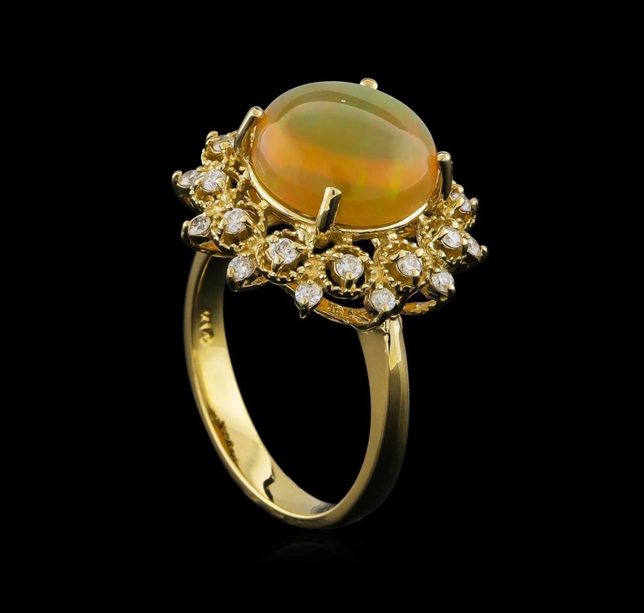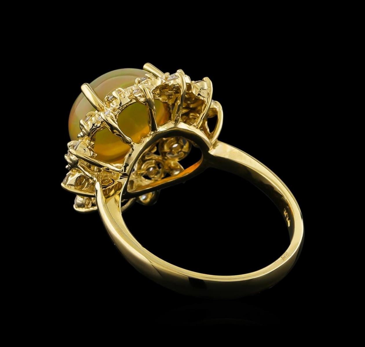 One ring featuring: 14KT yellow gold weighing 4.60 grams containing one opal center stone with a total weight of 3.30ct and diamonds with a total weight of 0.32ct.