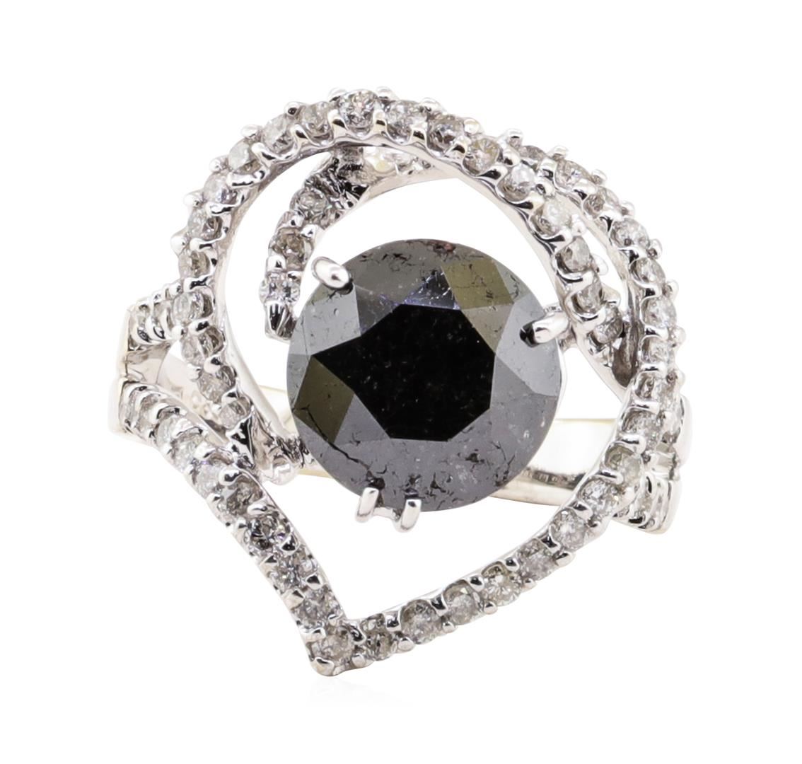 One 3.33ct Black Diamond and Diamond Ring - 18KT White Gold. IAS certified. See Appraisal for more details.