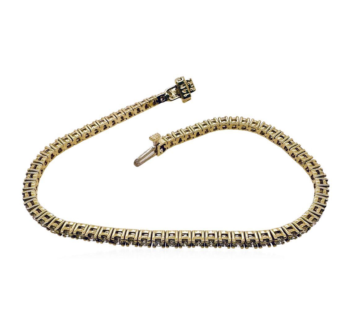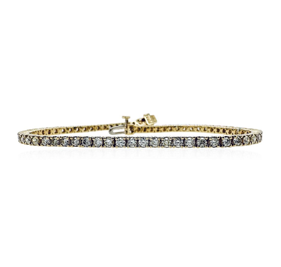 One electronically tested 14KT white gold lady's combination cast & assembled fashion straight line tennis bracelet with a tongue clasp with fold-under safety with a basket motif with a bright polish finish. Condition is new, good workmanship. The featured lady's bracelet measures approximately 7.00 inches in length. Identified with markings of 14K. Containing: 67 prong set round brilliant cut diamonds, approximate total weight of 67 stones = 3.36 ctw. Graded in the setting. Total estimated retail value: $9250.