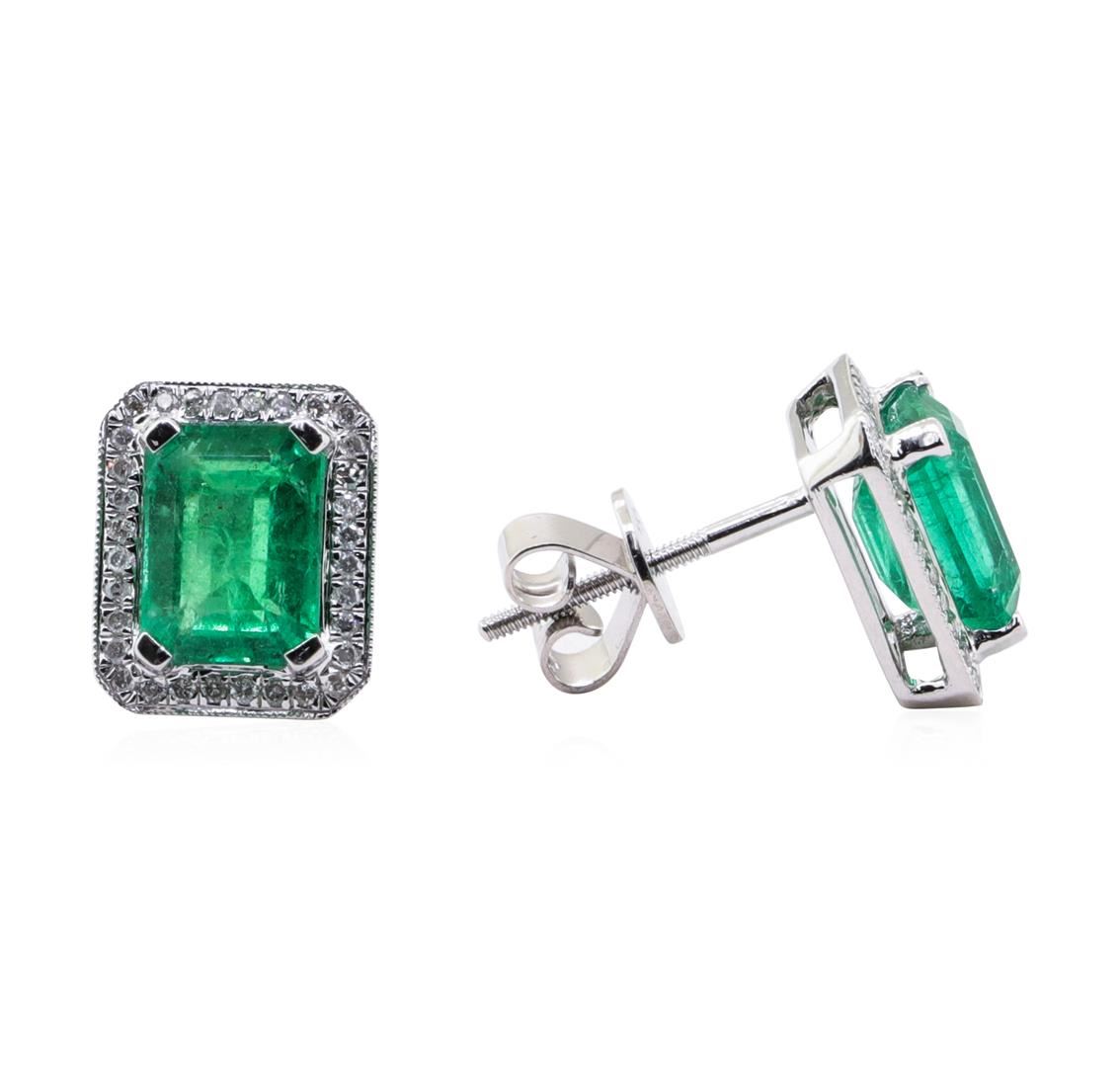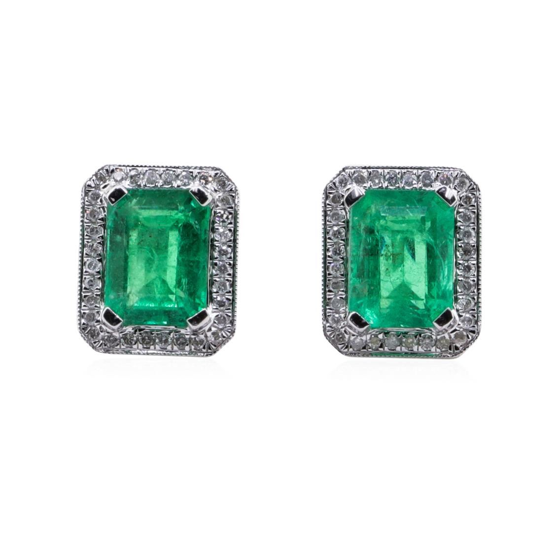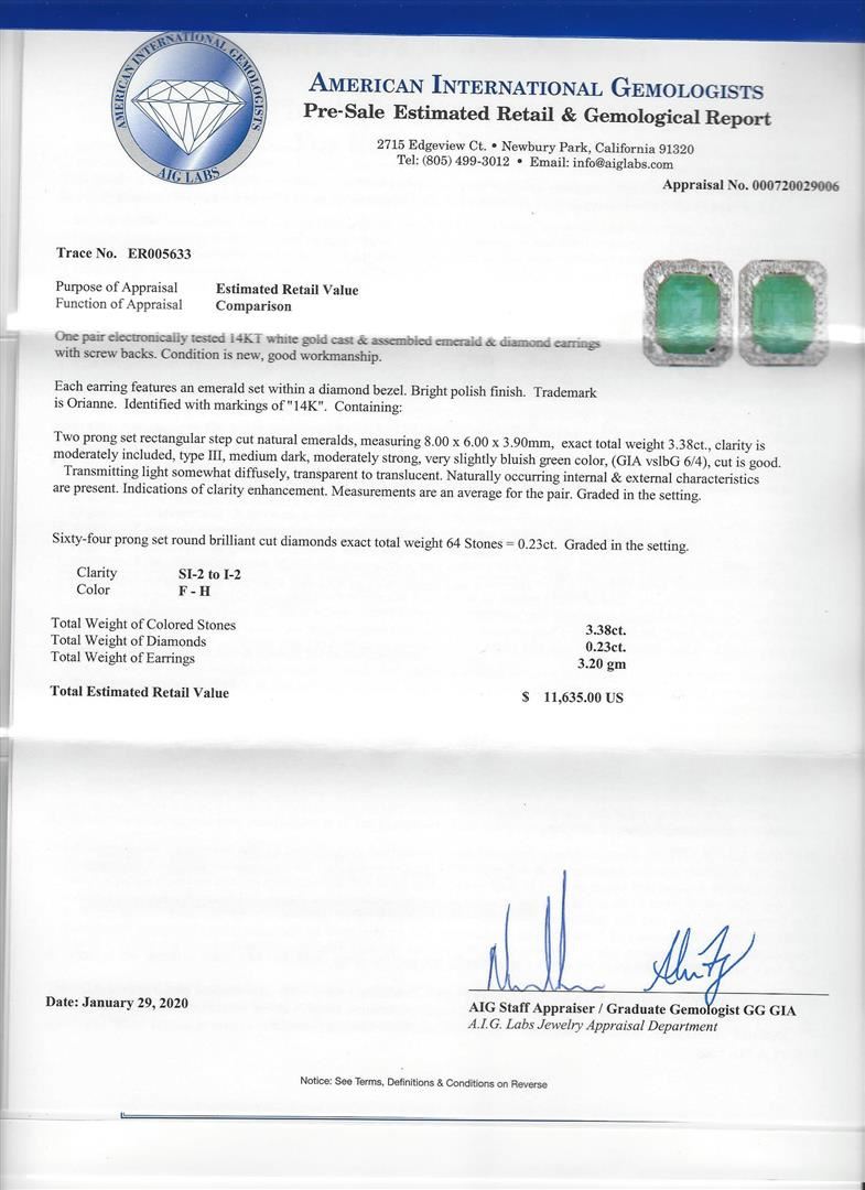 One 3.38ctw Emerald and Diamond Earrings - 14KT White Gold. AIG certified. See Appraisal for more details. AIG Appraised.