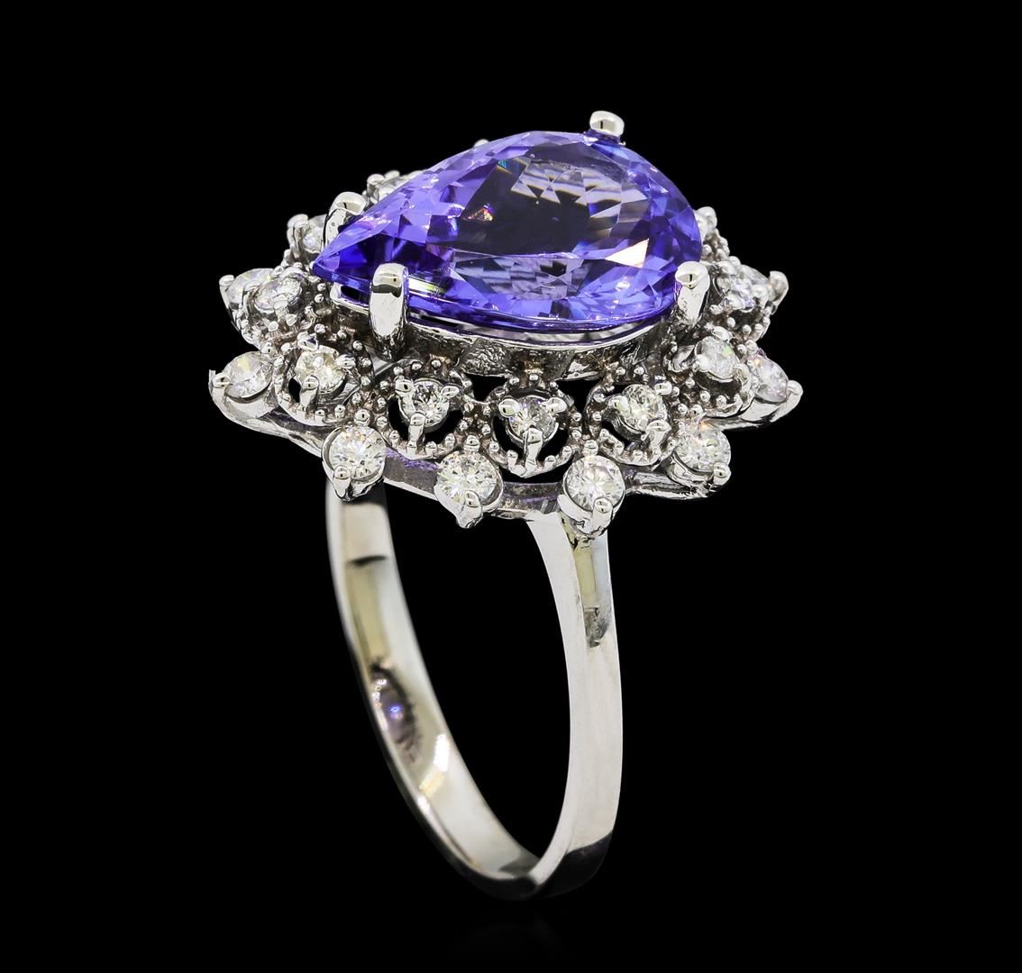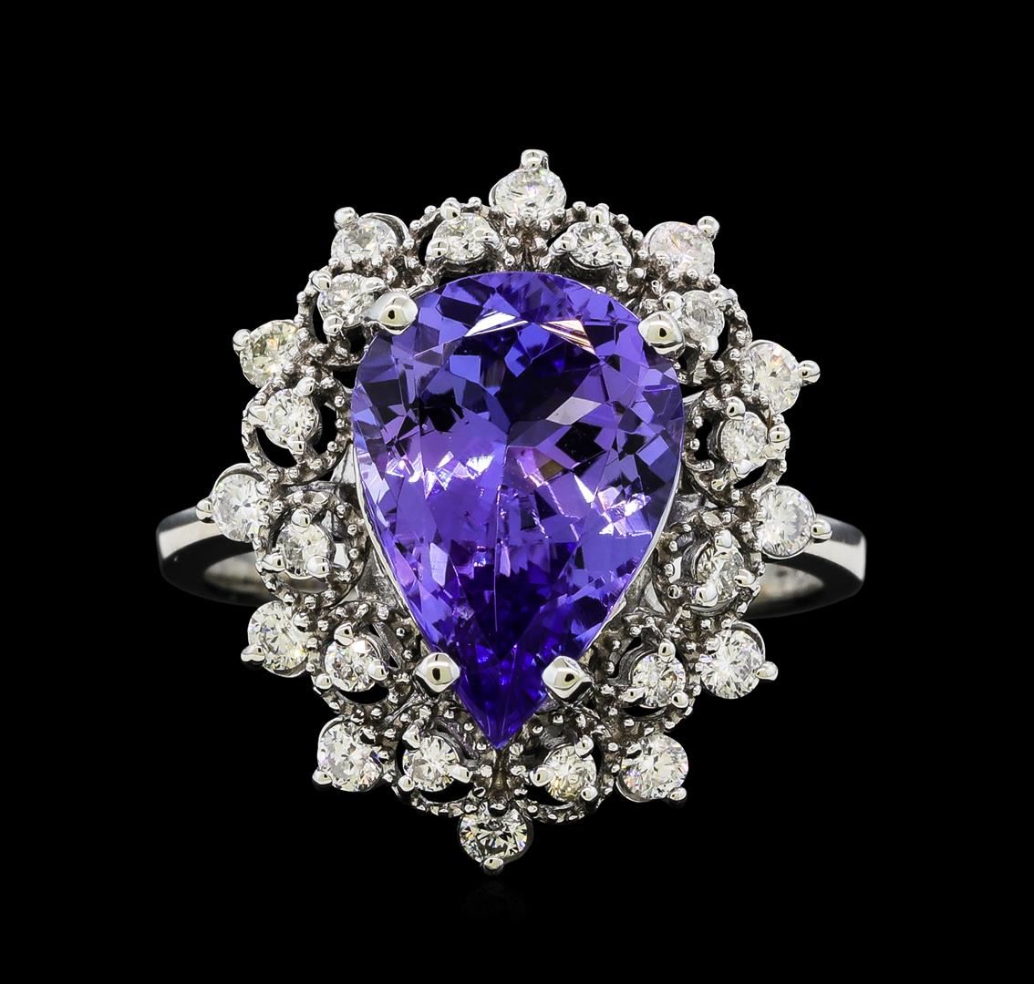 One Tanzanite and Diamond Ring including: 14KT White Gold weighing a total of 3.78 grams, Tanzanite weighing a total of 3.44ct, and 24 Diamonds weighing a total of 0.45ctw.