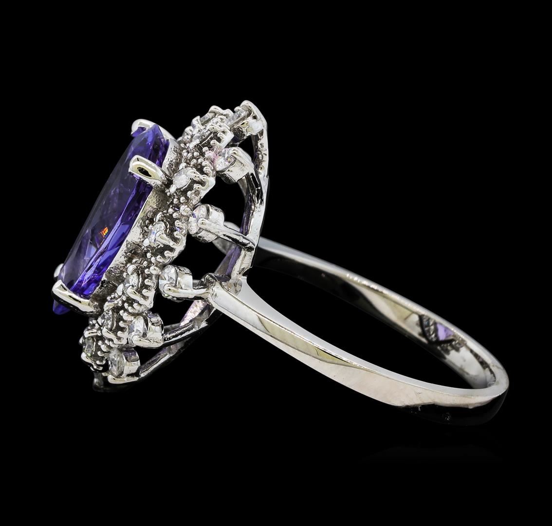 One Tanzanite and Diamond Ring including: 14KT White Gold weighing a total of 3.78 grams, Tanzanite weighing a total of 3.44ct, and 24 Diamonds weighing a total of 0.45ctw.