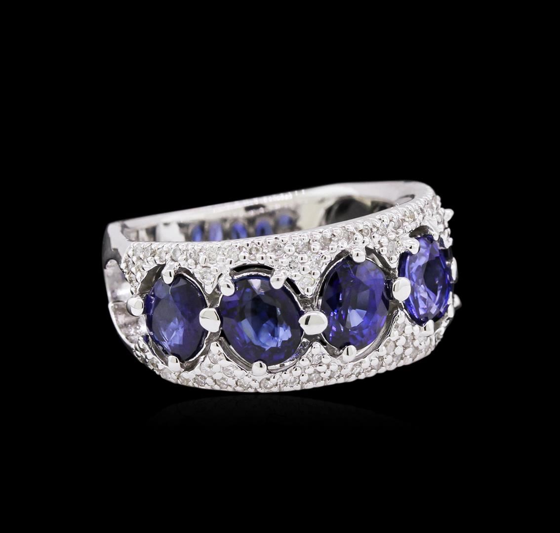 One ring featuring: 14KT white gold weighing 6.40 grams containing 5 sapphires with a total weight of 3.50ct and diamonds with a total weight of 0.32ct.