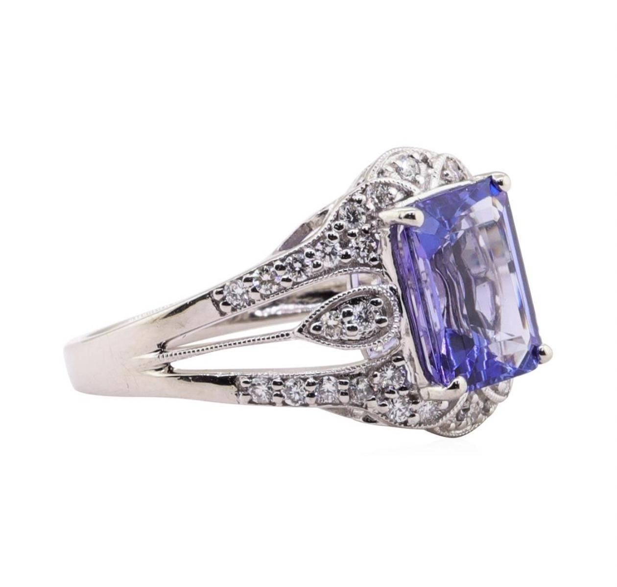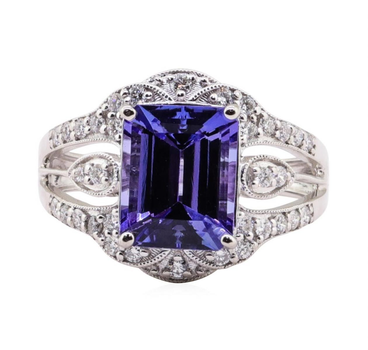 One 3.52ct Tanzanite and Diamond Ring - 14KT White Gold. IAS certified. See Appraisal for more details.
