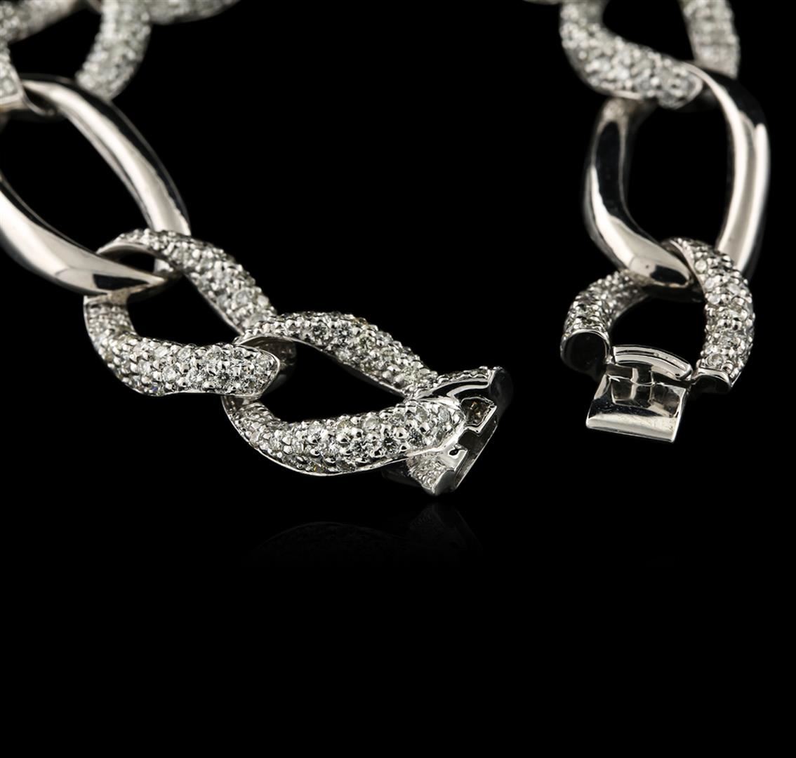 One electronically tested 18KT white gold ladies cast diamond bracelet with a toggle clasp with a bright polish finish. Condition is new. Measurements: 7.50" in length Containing: Two hundred sixty-four prong set round brilliant cut diamonds, measuring 1.60 - 1.50 x 0.93mm (depth est.) approximate total weight of 264 Stones = 3.59ct. Clarity of VS-2 to SI-1, color of 1- J, cut is good. Diamonds are graded in the mounting, unless otherwise stated Total Weight of Diamonds 3.59ct. Total Weight of Bracelet 45.20gm Total Retail Replacement Value $ 13,915.00