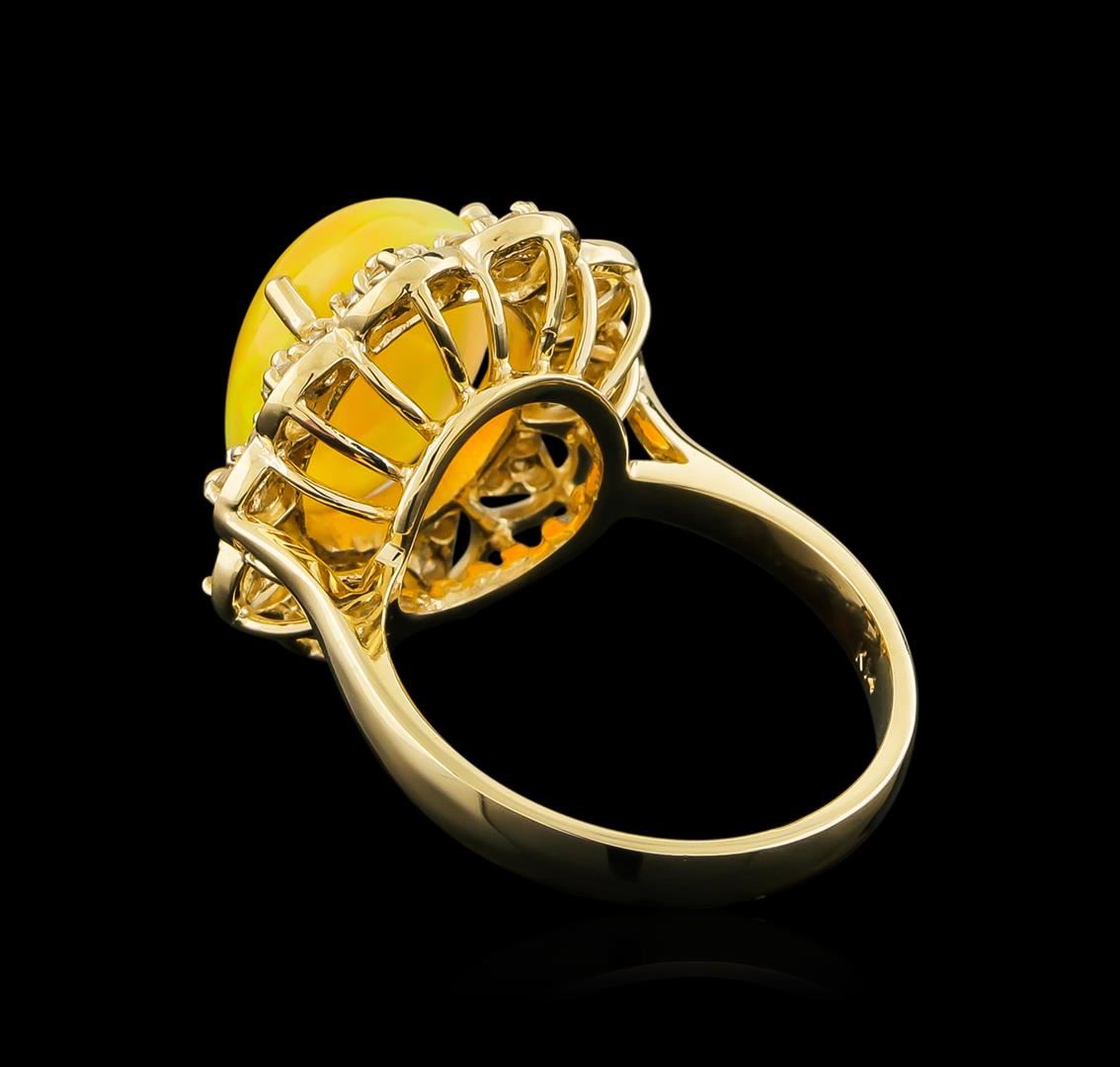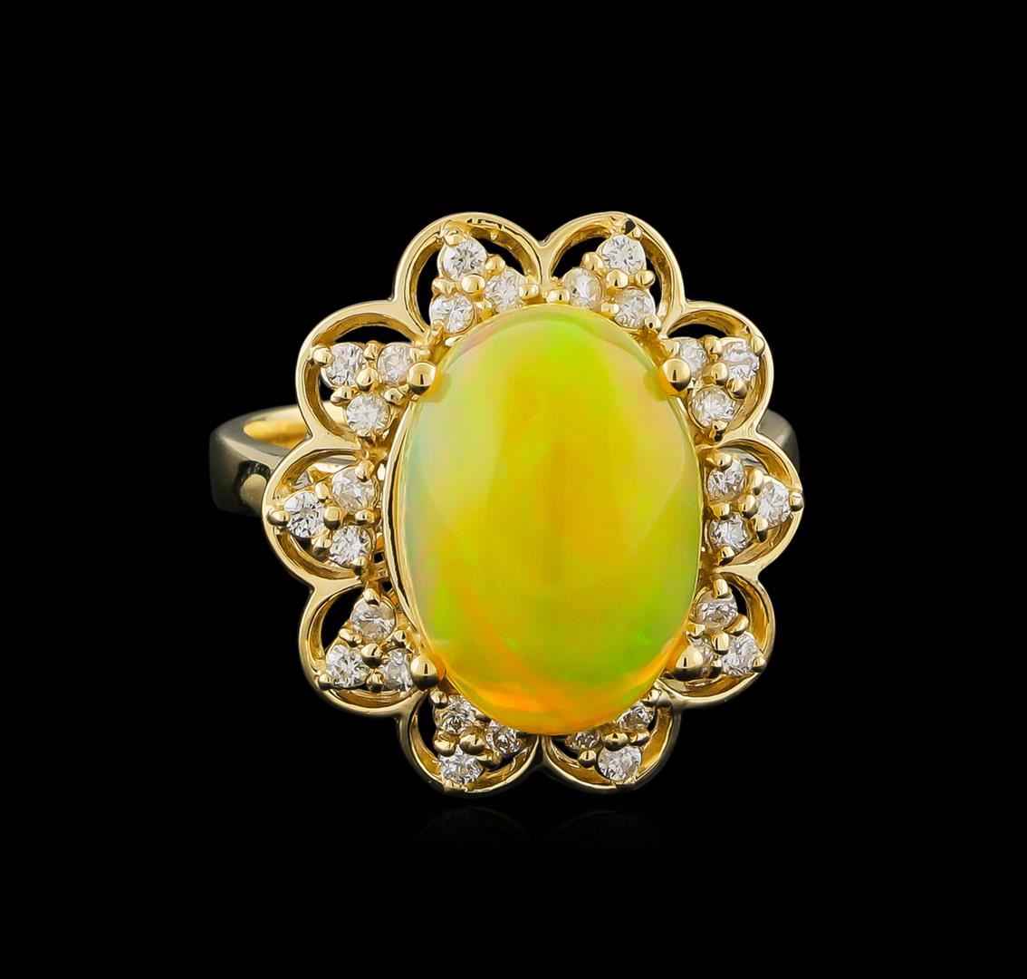 One ring featuring: 14KT yellow gold weighing 5.55 grams containing one opal center stone with a total weight of 3.65ct and diamonds with a total weight of 0.37ct.