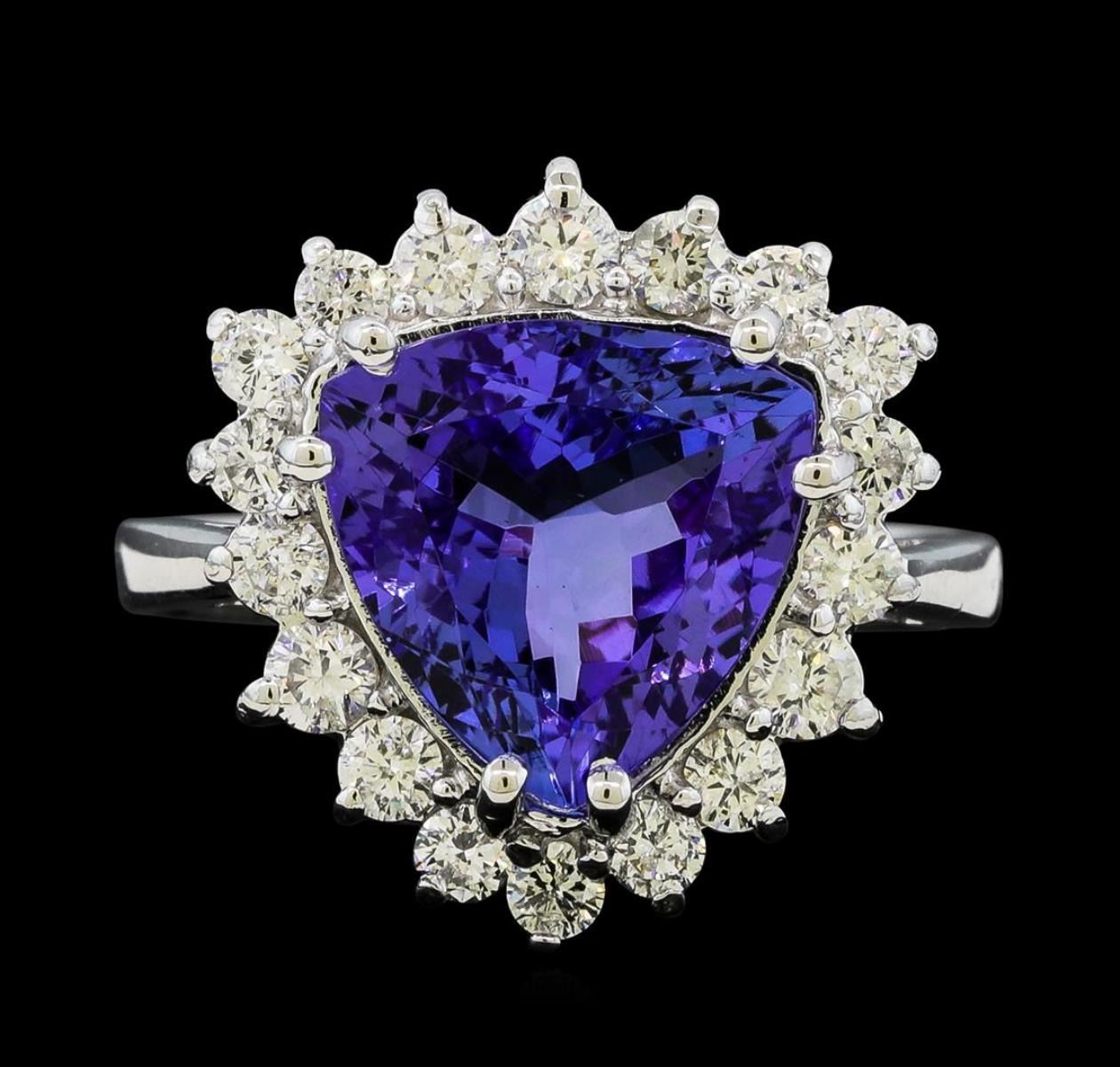 One Tanzanite and Diamond Ring including: 14KT White Gold weighing a total of 4.07 grams, Tanzanite weighing a total of 3.70ct, and 18 Diamonds weighing a total of 0.65ctw.