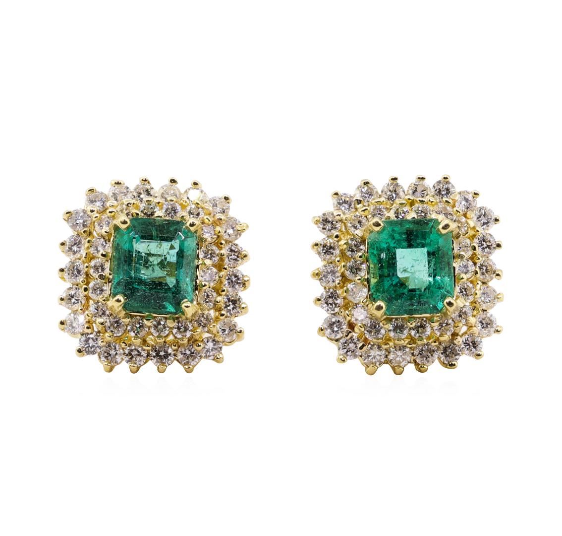 One 3.71ctw Emerald and Diamond Earrings - 18KT Yellow Gold. AIG certified. See Appraisal for more details. AIG Appraised.