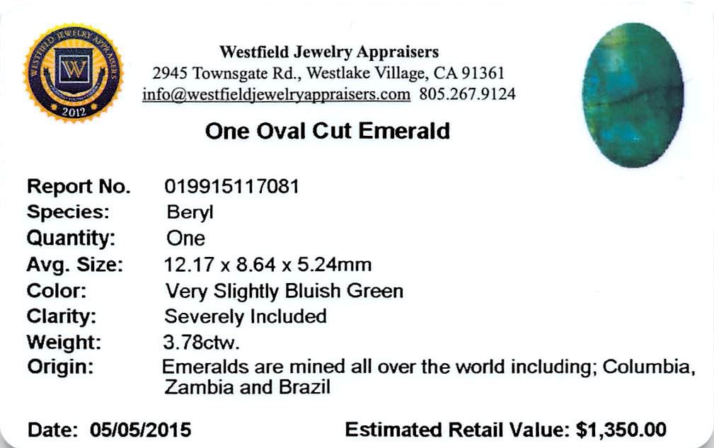 One 3.78 ctw Oval Emerald Parcel.