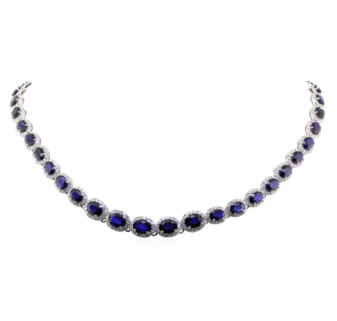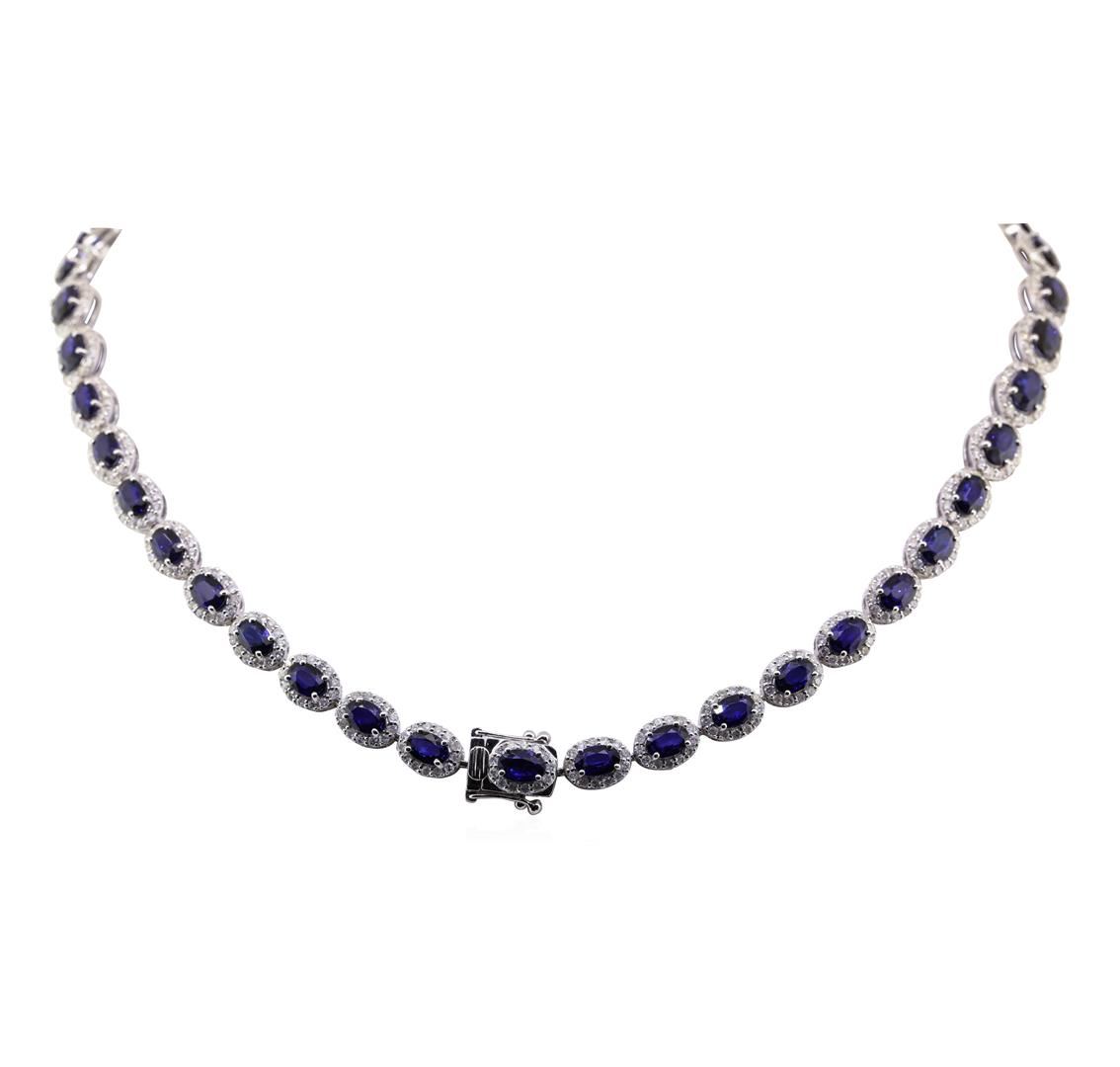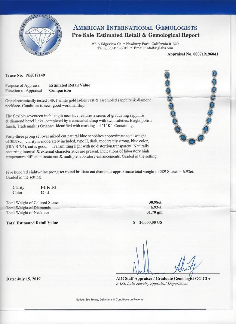 One 30.98ctw Sapphire and Diamond Necklace - 14KT White Gold. AIG certified. See Appraisal for more details. AIG Appraised.