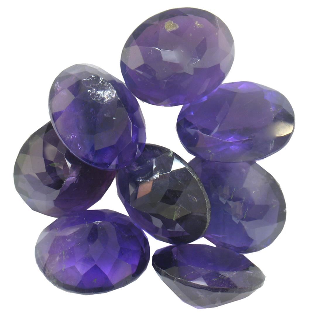 Eight oval mixed cut natural amethysts exact total weight 35.09ct., clarity is slightly included, type II, dark, very slightly grayish, purple color, (GIA P 7/3), cut is good. Westfield Appraised.
