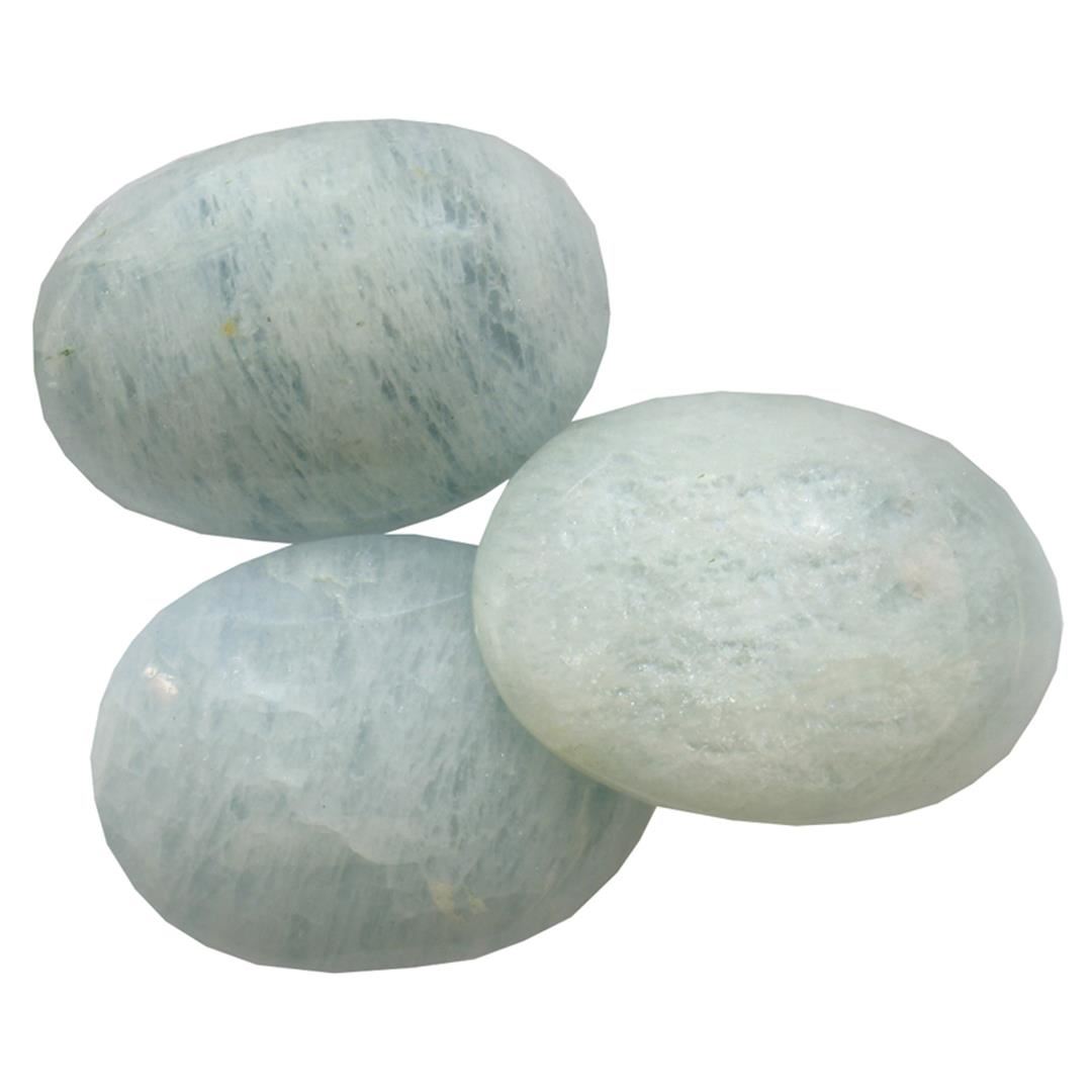 Three oval cabochon cut natural aquamarines exact total weight 36.17ct., clarity is heavily included, type I, medium, slightly grayish, very slightly greenish blue color, (GIA vslgB 5/2), cut is good. Westfield Appraised.