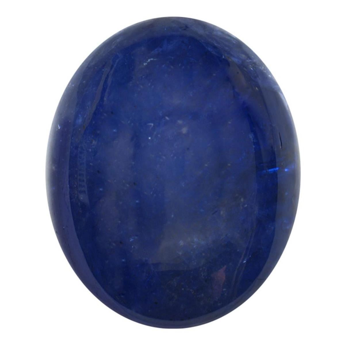 One oval cabochon cut natural tanzanite, measuring 21.50 x 18.00 x 10.00mm, exact weight 37.02ct., clarity is heavily included, type I, dark, very slightly grayish, blue color, (GIA B 7/3), cut is good. Transmitting light somewhat diffusely, transparent to translucent. Naturally occurring internal & external characteristics are present. Indications of heat treatment. Westfield Appraised.