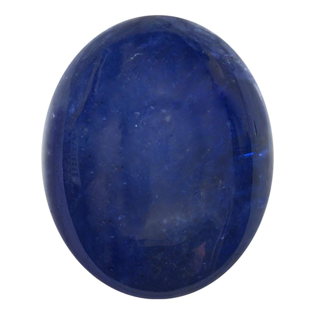 One oval cabochon cut natural tanzanite, measuring 21.50 x 18.00 x 10.00mm, exact weight 37.02ct., clarity is heavily included, type I, dark, very slightly grayish, blue color, (GIA B 7/3), cut is good. Transmitting light somewhat diffusely, transparent to translucent. Naturally occurring internal & external characteristics are present. Indications of heat treatment. Westfield Appraised.
