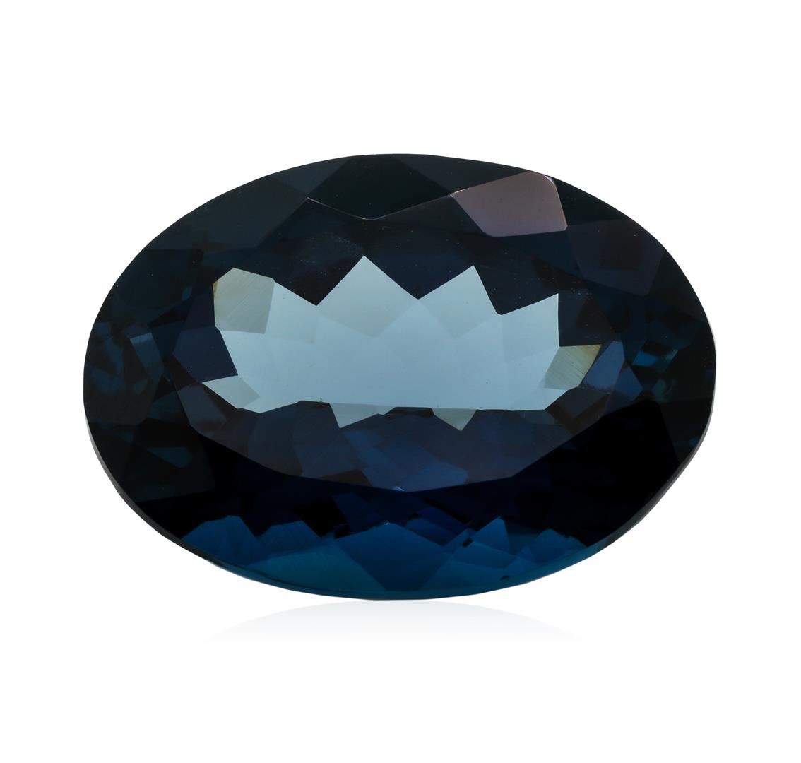 One natural oval cut london blue topaz with an exact weight of 39.00ct., clarity is eye clean, greenish blue, dark. Gemological Appraisals Services estimates the retail value at $780 GAS Appraised.