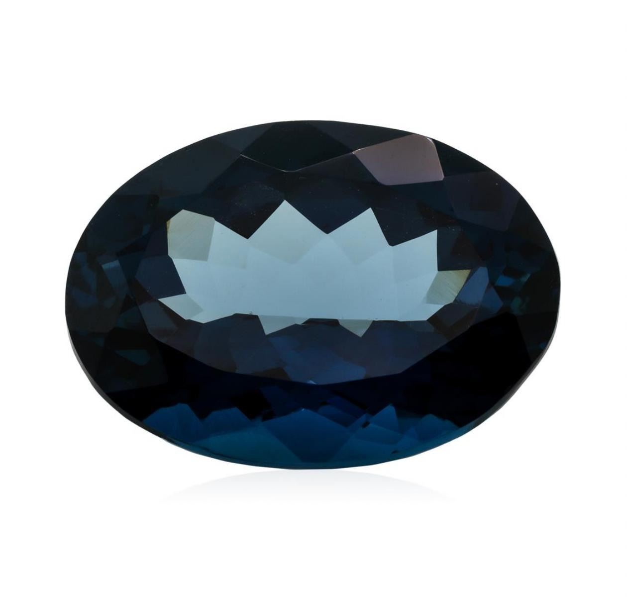 One natural oval cut london blue topaz with an exact weight of 39.00 ct., clarity is eye clean, greenish blue, dark. Gemological Appraisals Services estimates the retail value at $780 GAS Appraised.