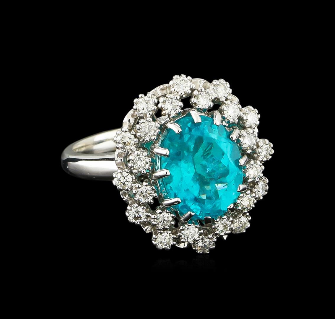 One Ring featuring: 14KT White Gold weighing 6.82 grams containing one Apatite center stone with a total weight of 4.08ct and Diamonds with a total weight of 0.6ct.