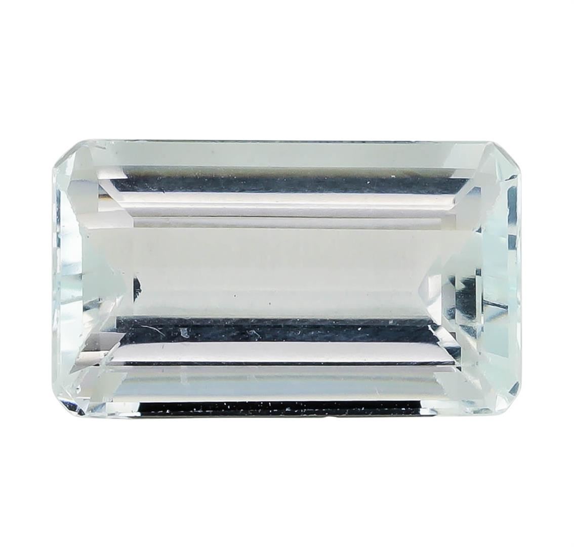 One natural emerald cut aquamarine with an exact weight of 4.15ct., clarity is eye clean, slightly grayish greenish blue. Gemological Appraisals Services estimates the retail value at $1660 GAS Appraised.