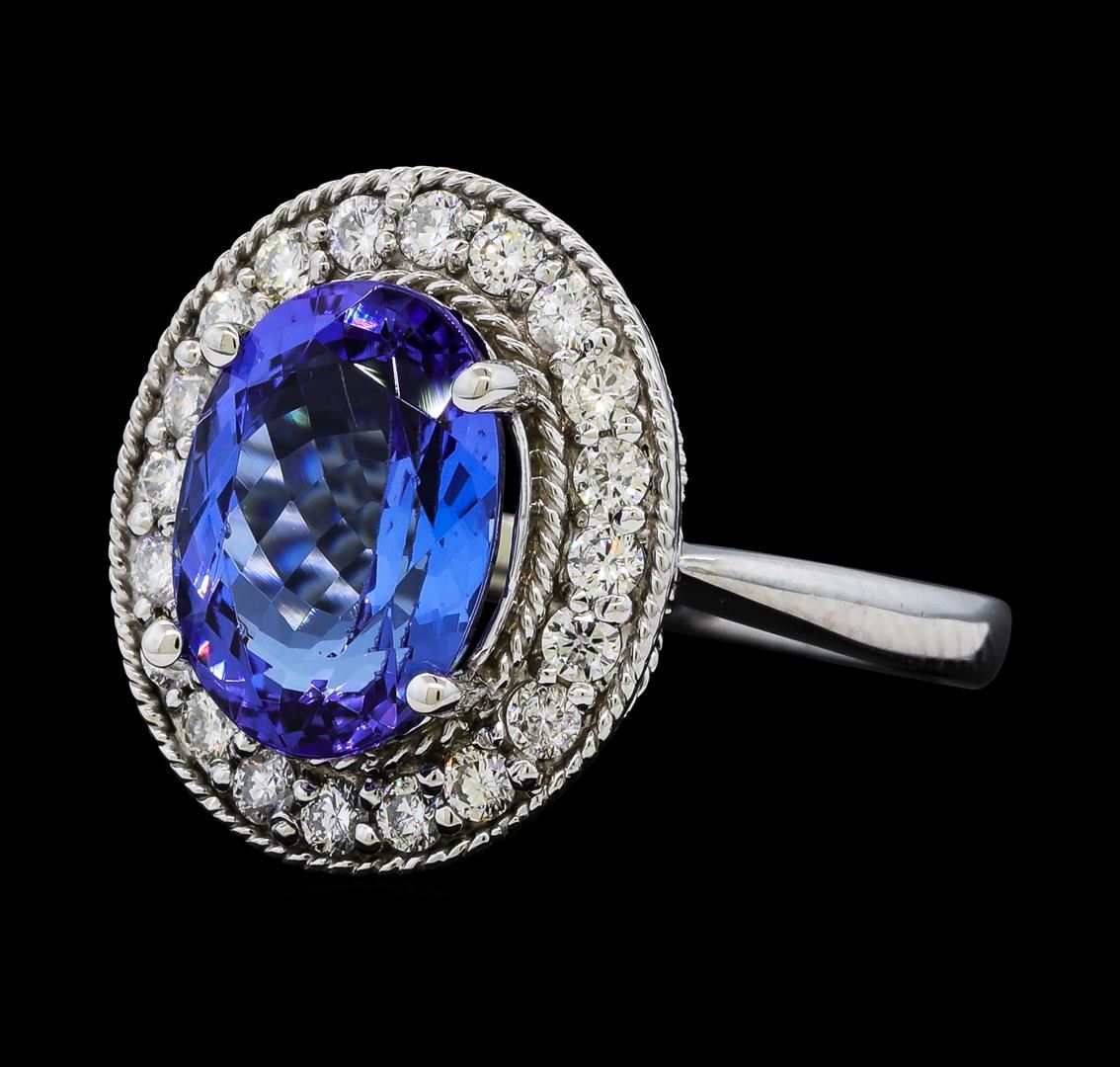 One Tanzanite and Diamond Ring including: 14KT White Gold weighing a total of 4.72 grams, Tanzanite weighing a total of 4.18ct, and 20 Diamonds weighing a total of 0.50ctw.