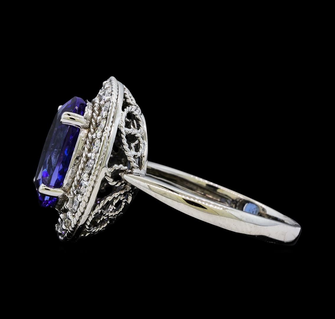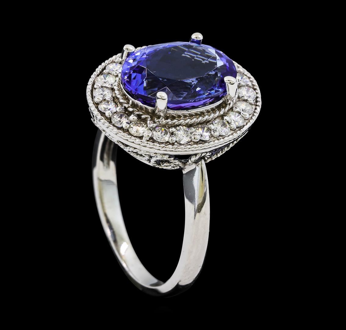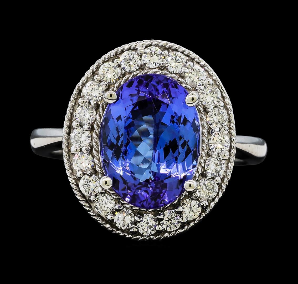 One Tanzanite and Diamond Ring including: 14KT White Gold weighing a total of 4.72 grams, Tanzanite weighing a total of 4.18ct, and 20 Diamonds weighing a total of 0.50ctw.
