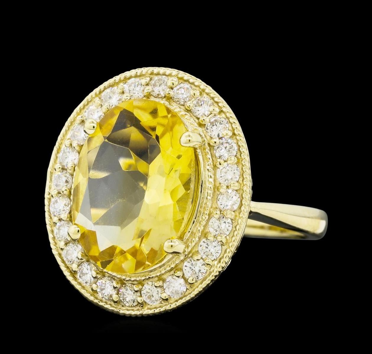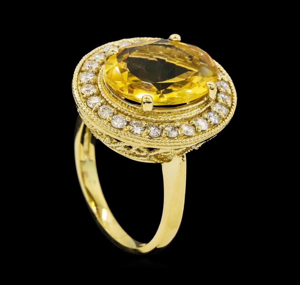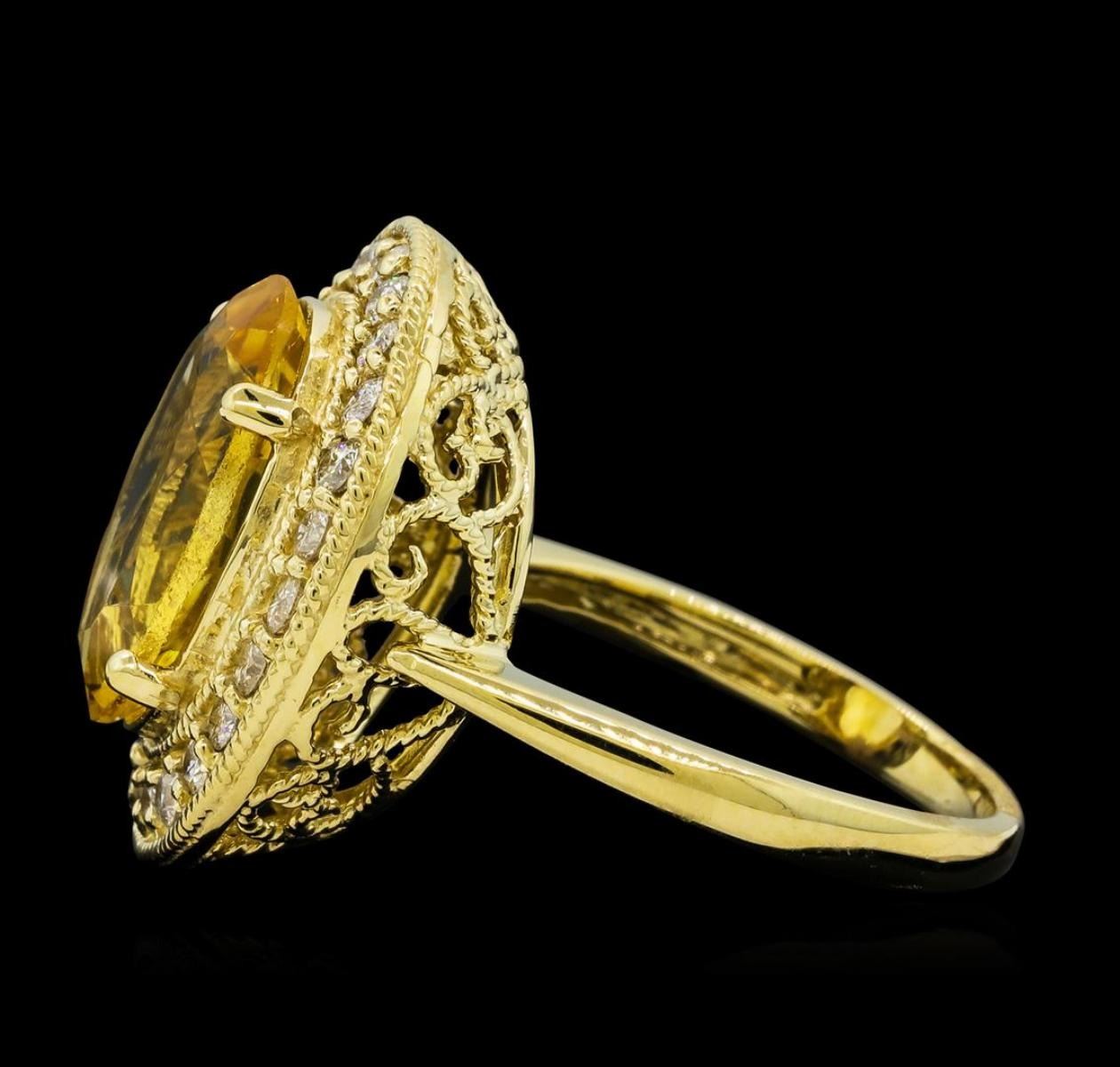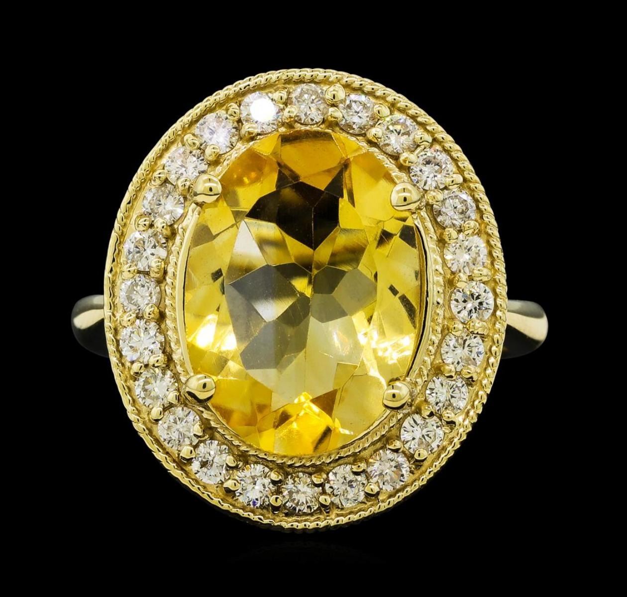 One Citrine Quartz and Diamond Ring including: 14KT Yellow Gold weighing a total of 6.33 grams, Citrine Quartz weighing a total of 4.22ct and 24 Diamonds weighing a total of 0.58ctw.