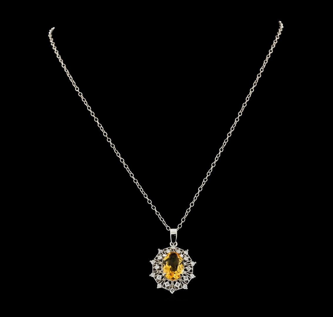 One pendant with chain : 14KT white gold weighing 4.66gm containing citrine quartz with a total weight of 4.30ct and diamonds weighing 0.74ctw.