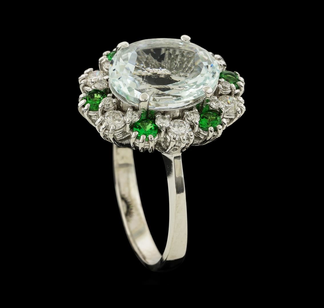 One ring : 14KT white gold weighing 4.73gm containing aquamarine with a total weight of 4.40ct, sapphire weighing 0.83ctw and diamonds weighing 0.60ctw.