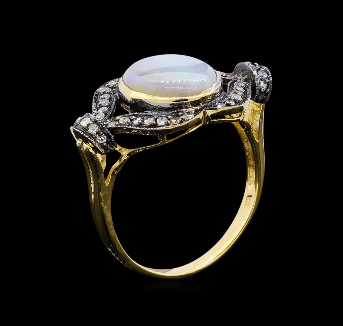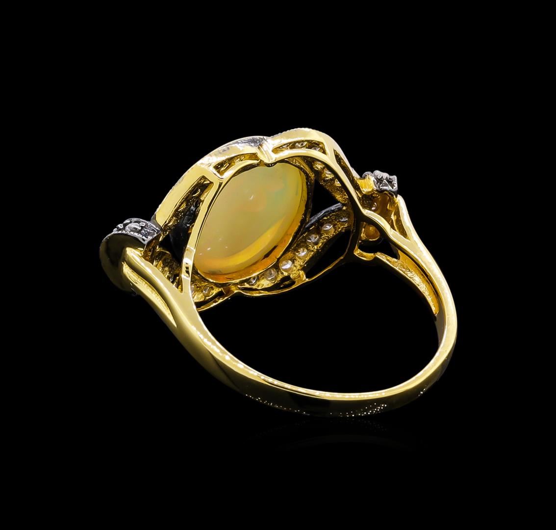 One ring featuring: 18KT yellow gold weighing 4.10 grams containing one opal with a total weight of 4.40ct and diamonds with a total weight of 0.20ct.