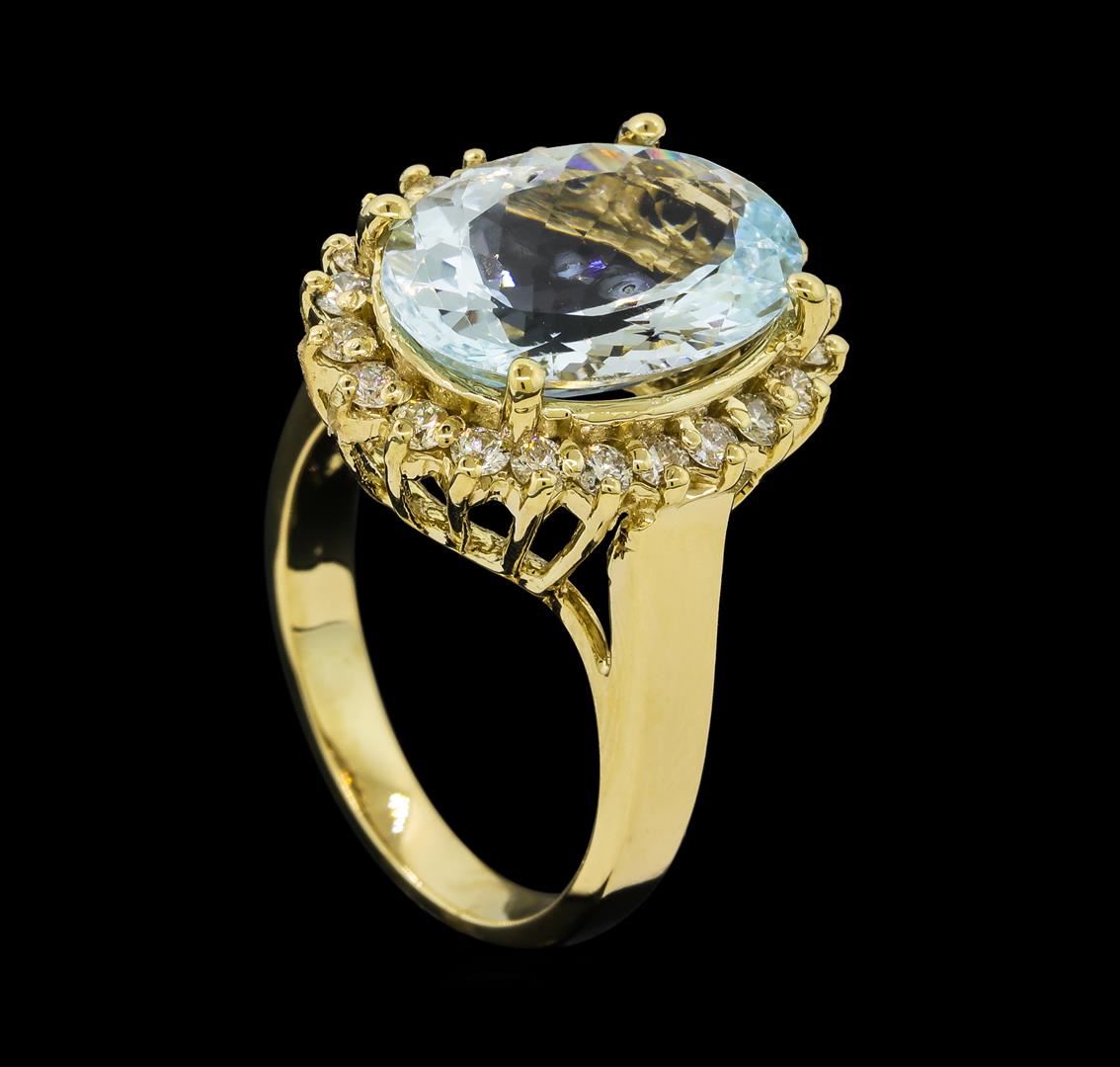 One Aquamarine and Diamond Ring including: 14KT Yellow Gold weighing a total of 6.60 grams, Aquamarine weighing a total of 4.45ct, and 22 Diamonds weighing a total of 0.54ctw.