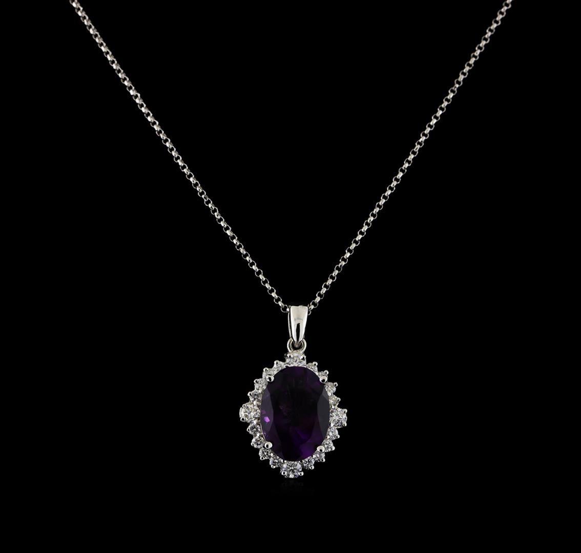 One Pendant With Chain featuring: 14KT White Gold weighing 3.6 grams containing one Amethyst center stone with a total weight of 4.46ct and Diamonds with a total weight of 0.63ct.