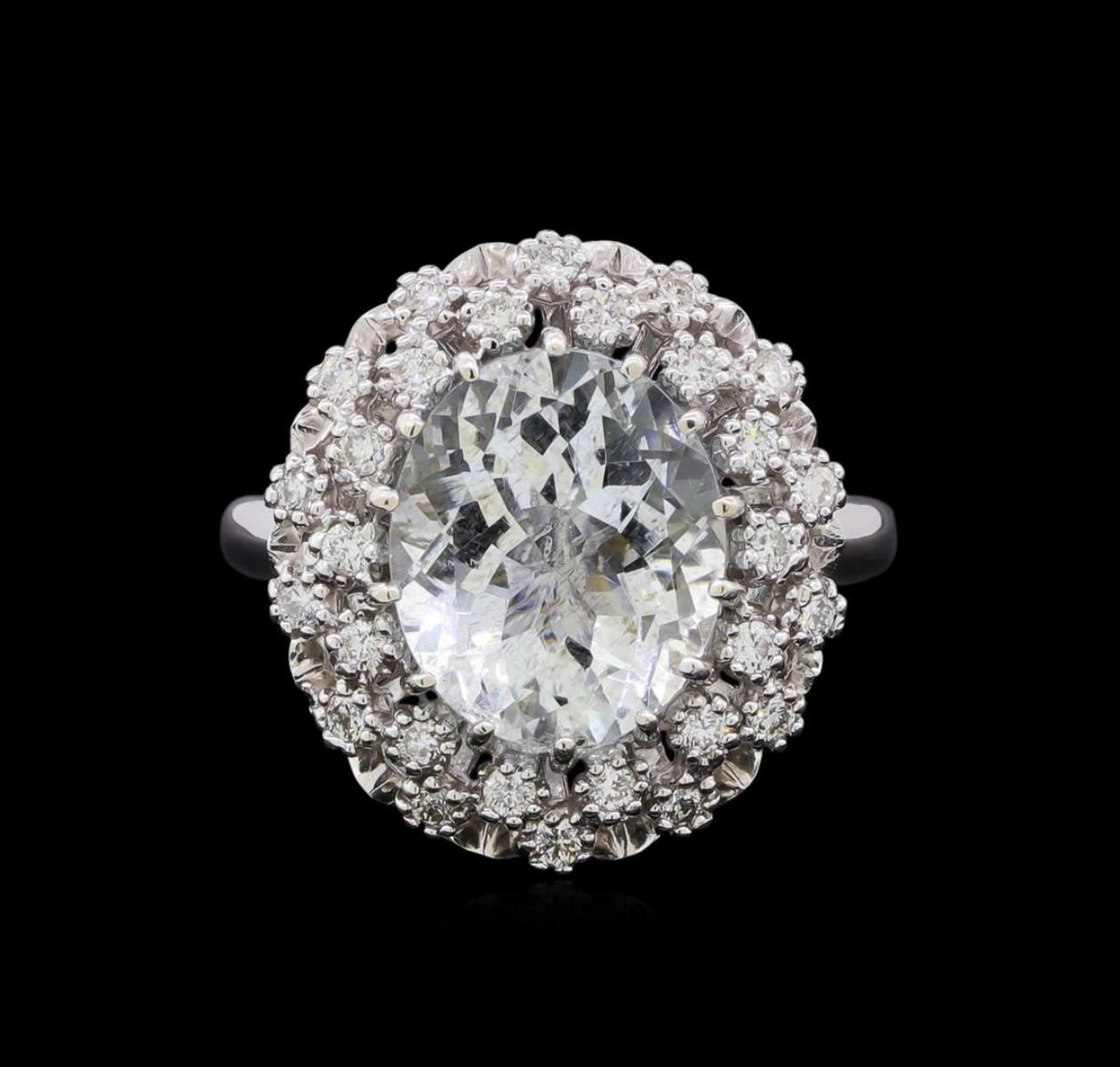 One ring featuring: 14KT white gold weighing 7.37 grams containing one aquamarine weighing 4.55ct and diamonds weighing 0.45ctw.